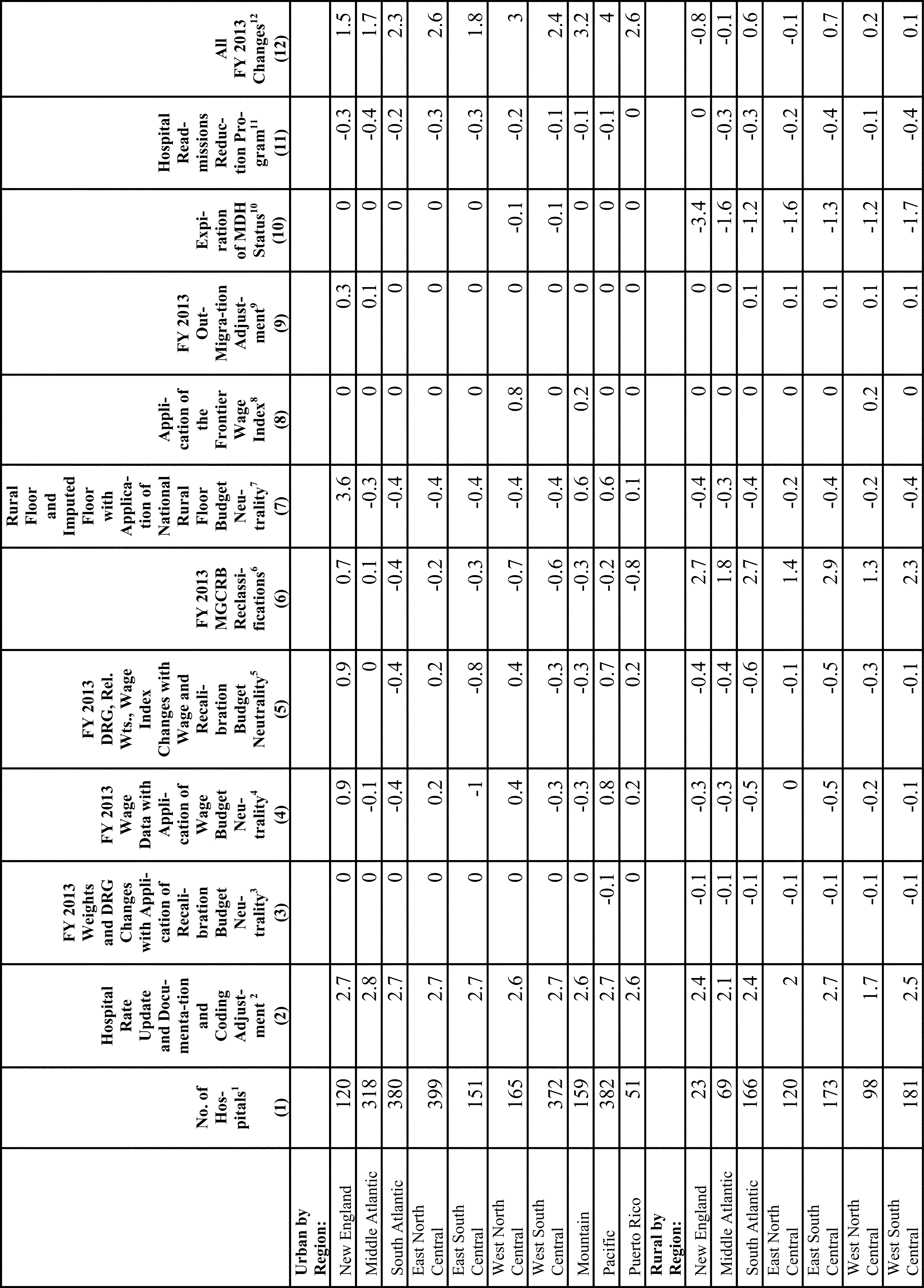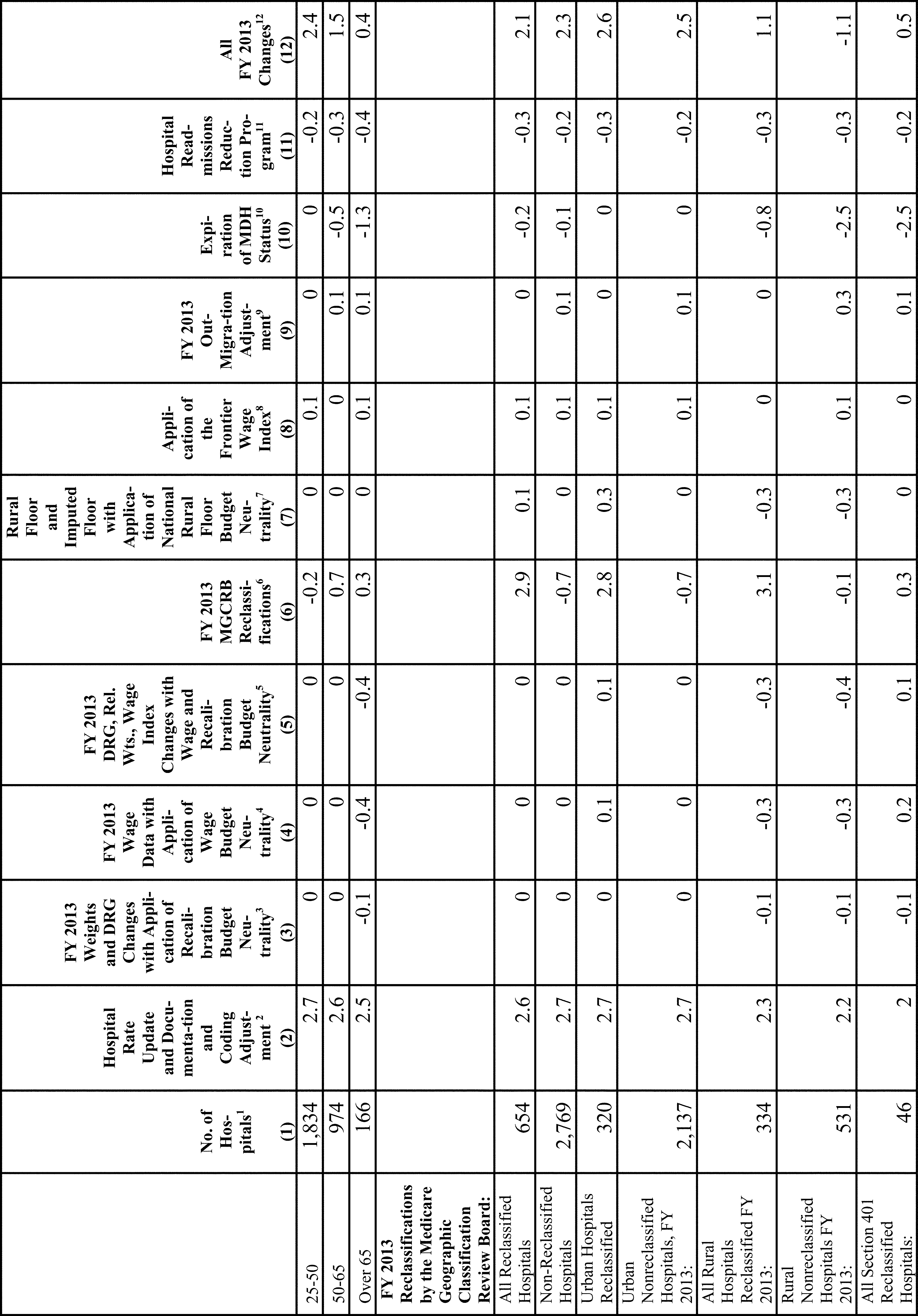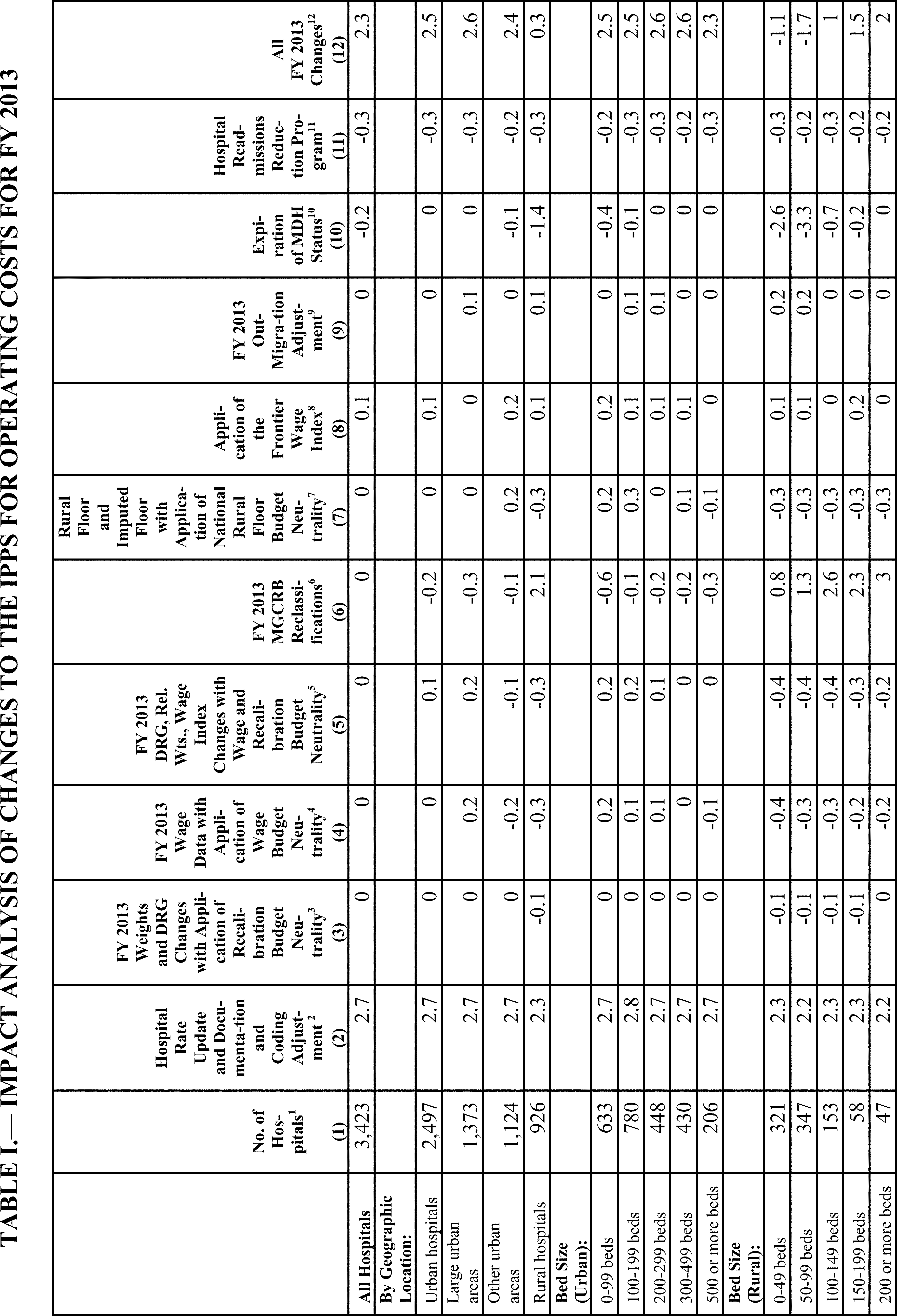 Table I of section I.G. of this Appendix demonstrates the estimated distributional impact of the IPPS budget neutrality requirements for the MS-DRG and wage index changes, and for the wage index reclassifications under the MGCRB. Table I also shows an overall increase of 2.3 percent in operating payments. We estimate that operating payments will increase by approximately $2.45 billion in FY 2013 relative to FY 2012. In addition, we estimate a savings of $24 million associated with the HACs policies in FY 2013, which is an additional $2 million in savings than in FY 2012. In FY 2012, pursuant to section 1109 of the Affordable Care Act, we distributed an additional $250 million to qualifying hospitals resulting in a decrease of $250 million in payments to hospitals in FY 2013 relative to FY 2012. Furthermore, we estimate that the expiration of the expansion of low-volume payments under sections 3125 and 10314 of the Affordable Care Act in FY 2013 will result in a decrease in payments of approximately $318 million compared to low-volume payments made in FY 2012. We estimate that new technology add-on payments will increase payments by approximately $46.1 million. Finally, we estimate that our finalized policies to count labor and delivery bed days in the available bed day count for IME and DSH payments will reduce IME payments by approximately $40 million for FY 2013. These estimates, combined with our FY 2013 operating estimate of $2.45 billion, will result in an increase of approximately $1.87 billion for FY 2013. We estimate that capital payments will experience a 1.8 percent increase in payments per case, as shown in Table III of section I.I. of this Appendix. We project that there will be a $154 million increase in capital payments in FY 2013 compared to FY 2012. The cumulative operating and capital payments should result in a net increase of approximately $2.04 billion to IPPS providers. The discussions presented in the previous pages, in combination with the rest of this final rule, constitute a regulatory impact analysis.