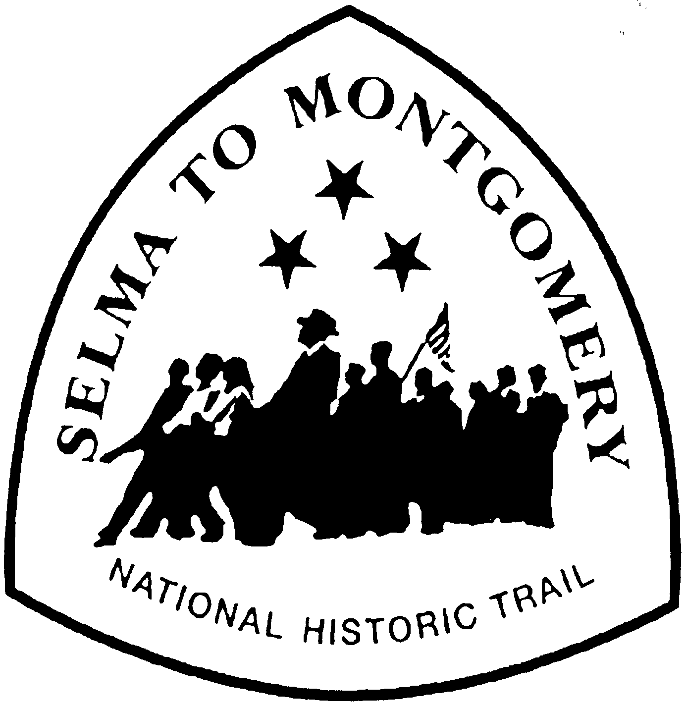 The insignia depicted below is prescribed as the official trail marker logo for the Selma to Montgomery National Historic Trail, administered by Central Alabama Parks. Authorization for use of this trail marker is controlled by the administrator of the Trail.