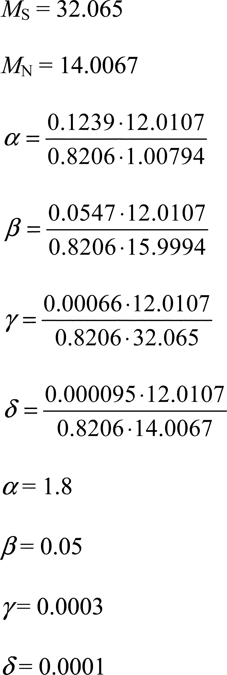 | ρ NOX | effective density of oxides of nitrogen 5 | 1912.5 | 54.156 |