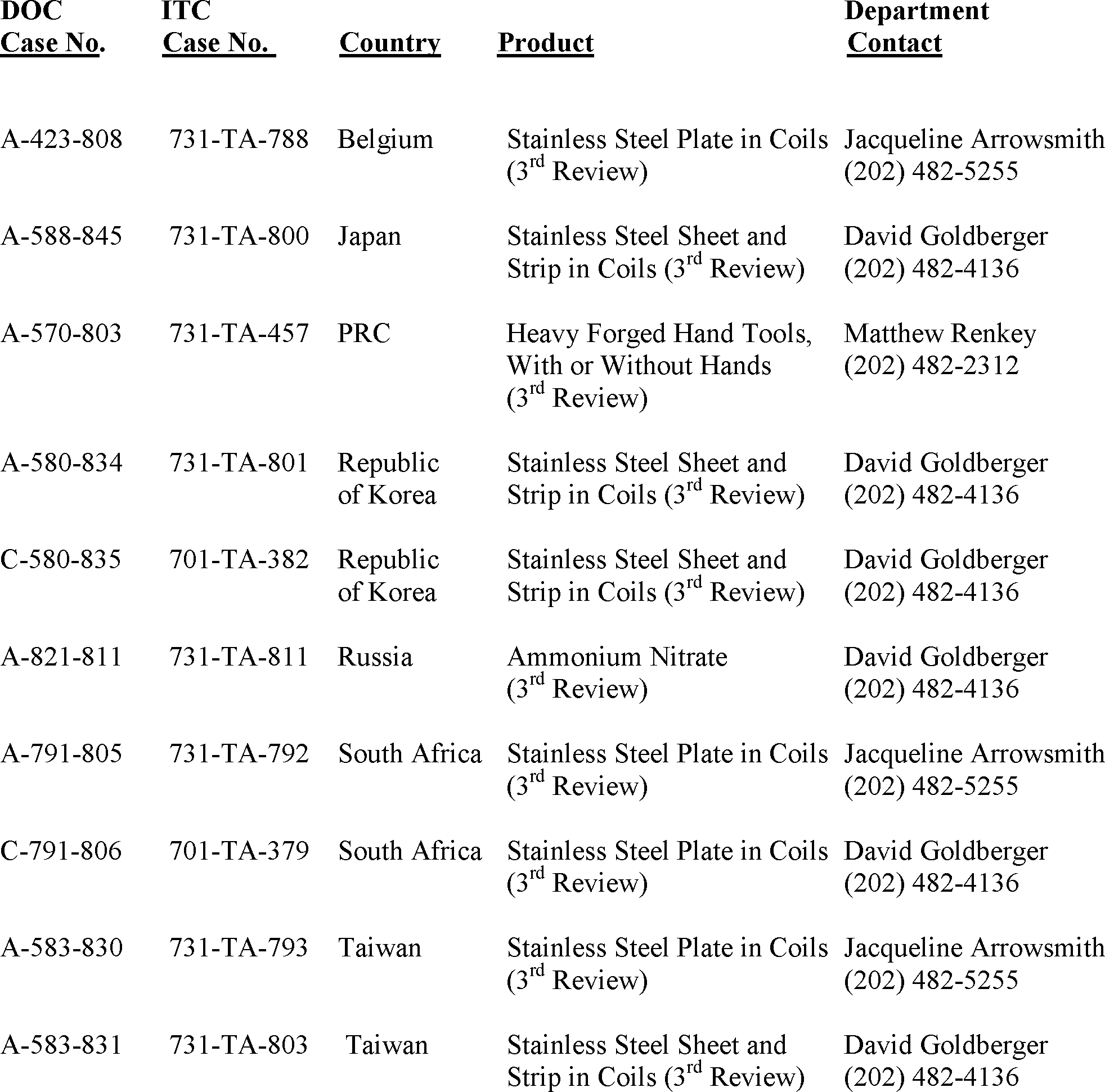The Department official identified in the Initiation of Review section below at AD/CVD Operations, Enforcement and Compliance, International Trade Administration, U.S. Department of Commerce, 14th Street and Constitution Avenue NW., Washington, DC 20230. For information from the Commission contact Mary Messer, Office of Investigations, U.S. International Trade Commission at (202) 205-3193.