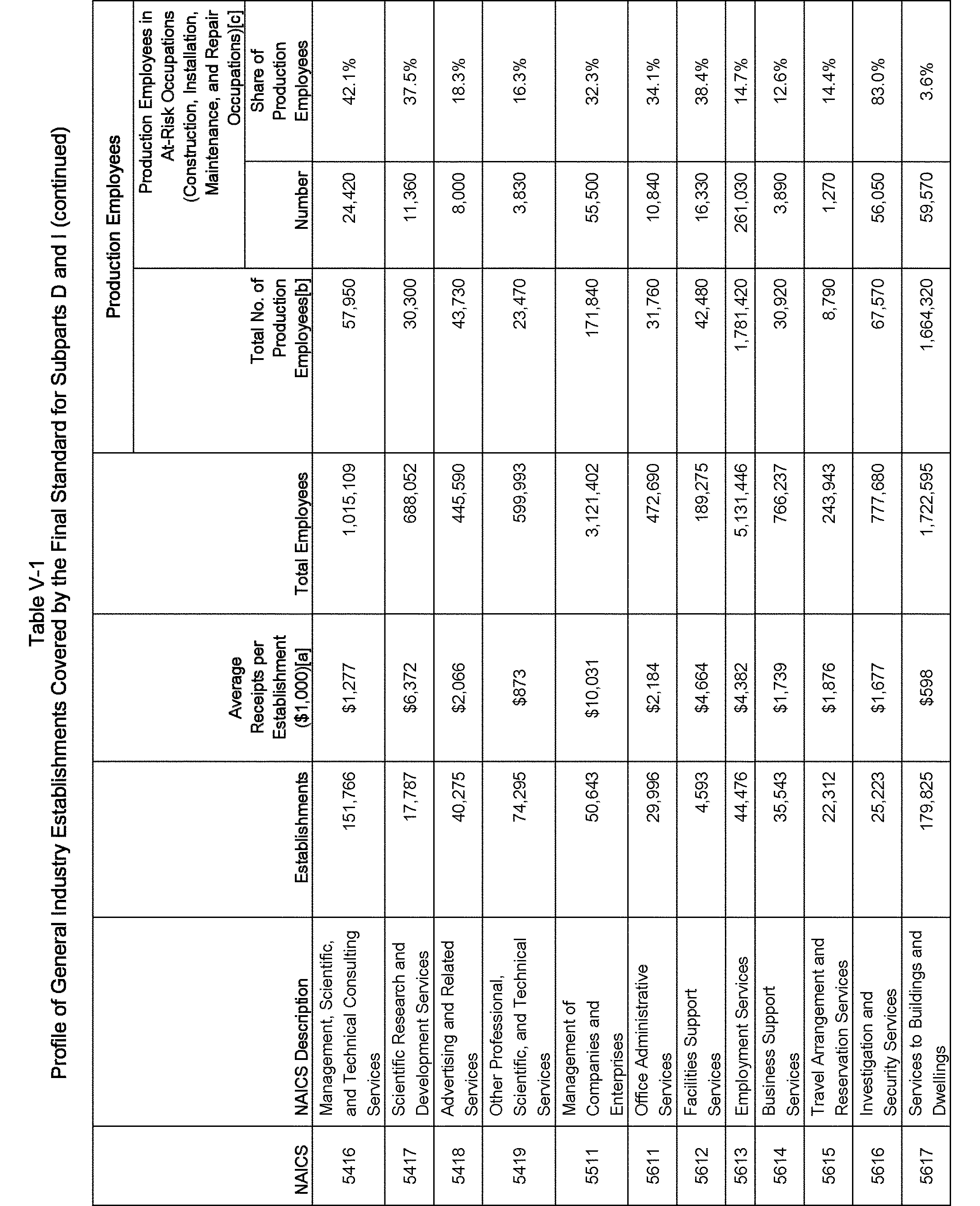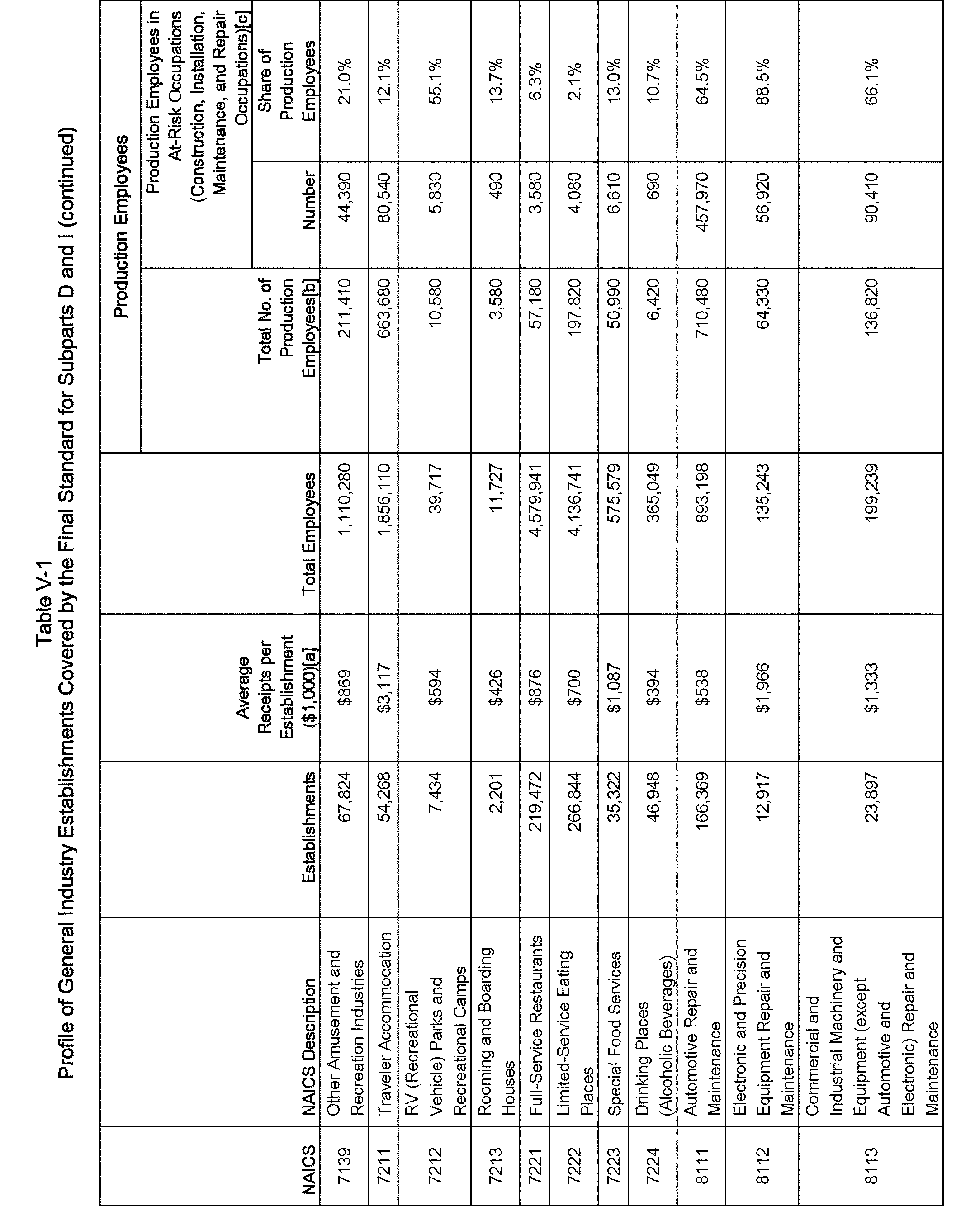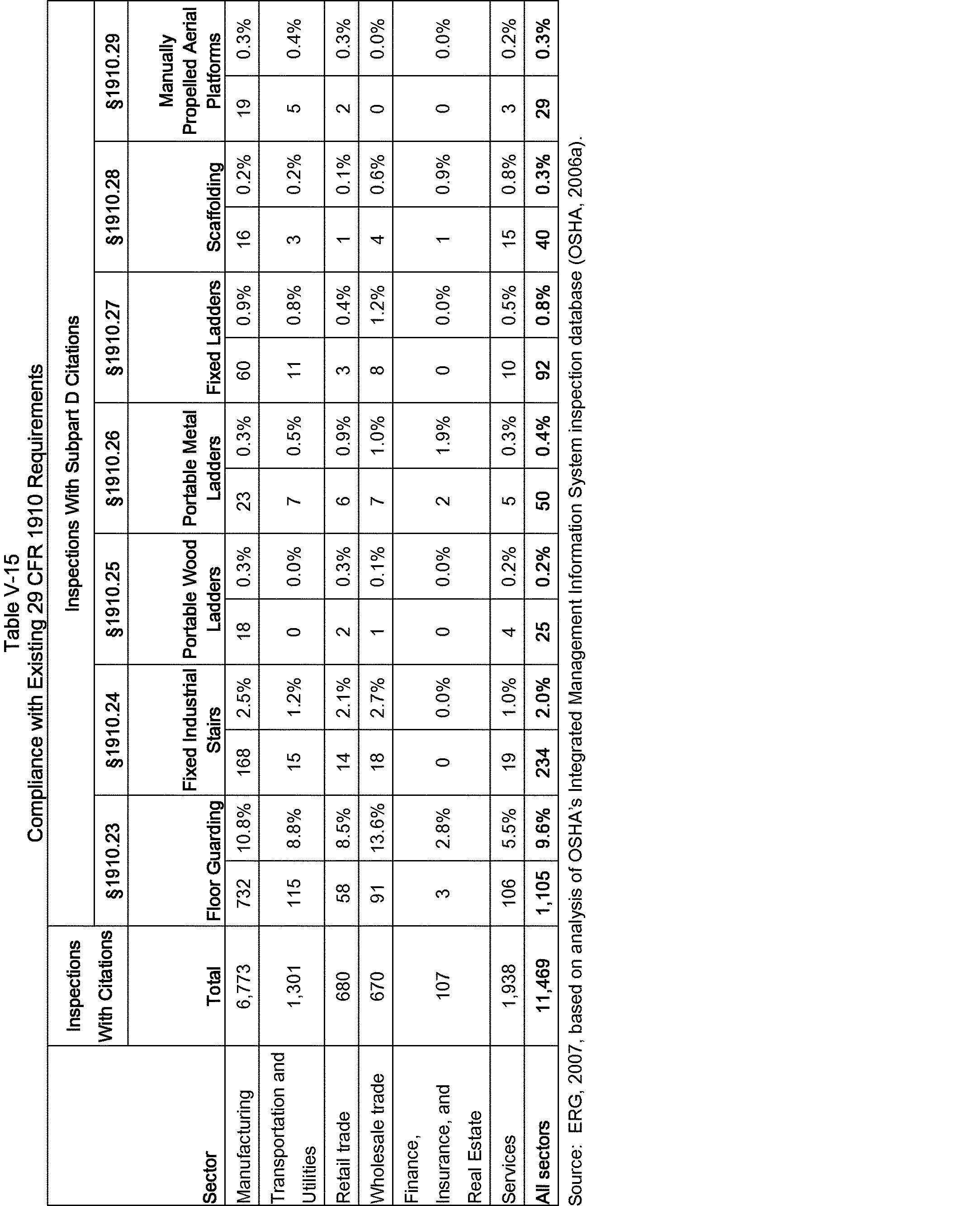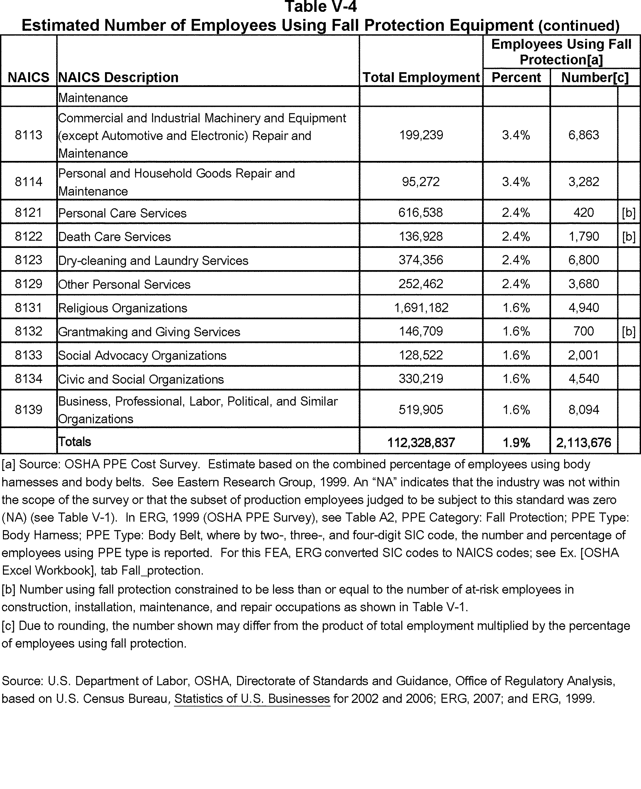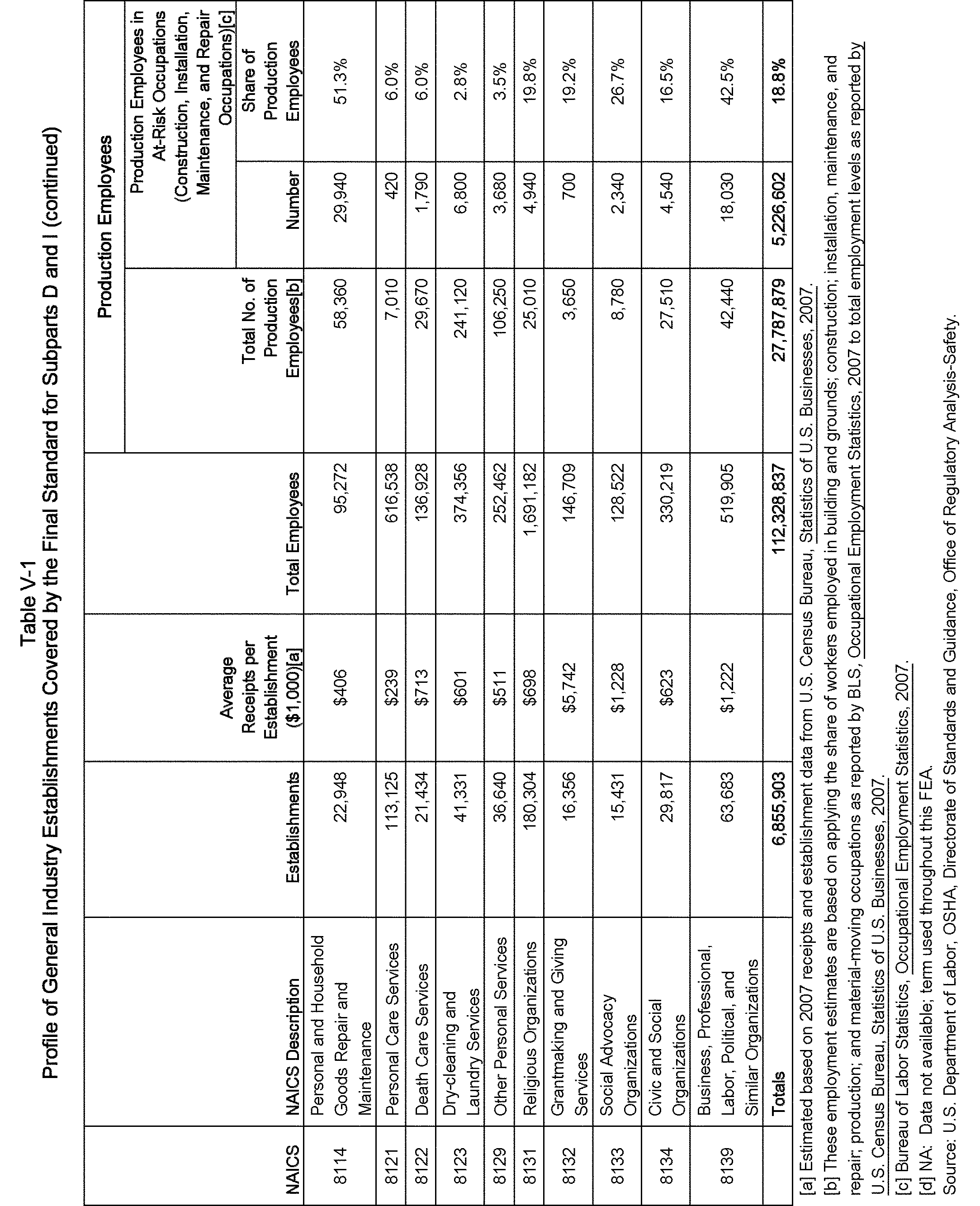 Relying on the U.S. Census' Statistics of U.S. Businesses for 2007, OSHA estimates that 6.9 million general industry establishments employing 112.3 million employees will be affected by the final standard. For the industries affected by the final standard, OSHA examined fatalities and lost-workday injuries for falls to a lower level.