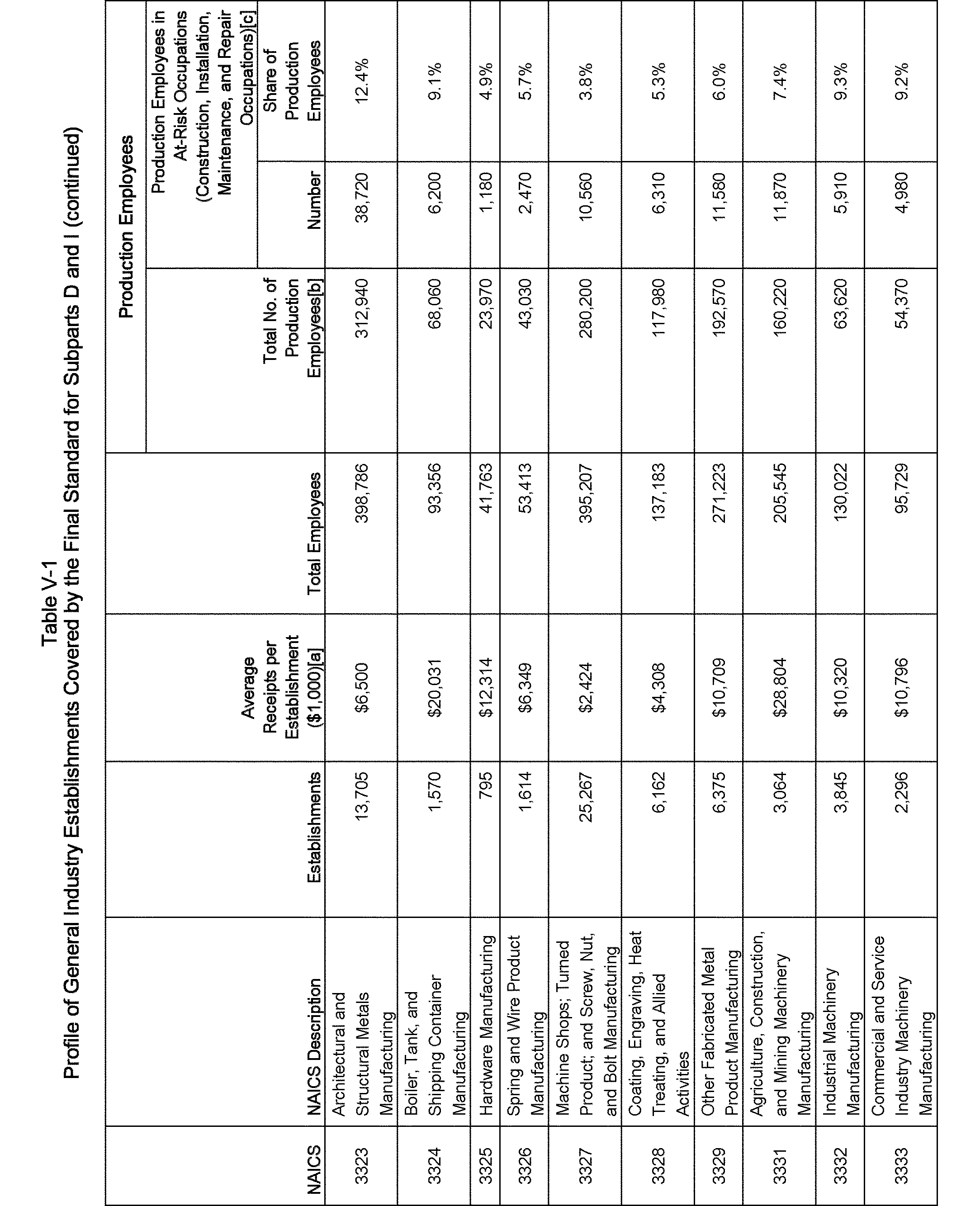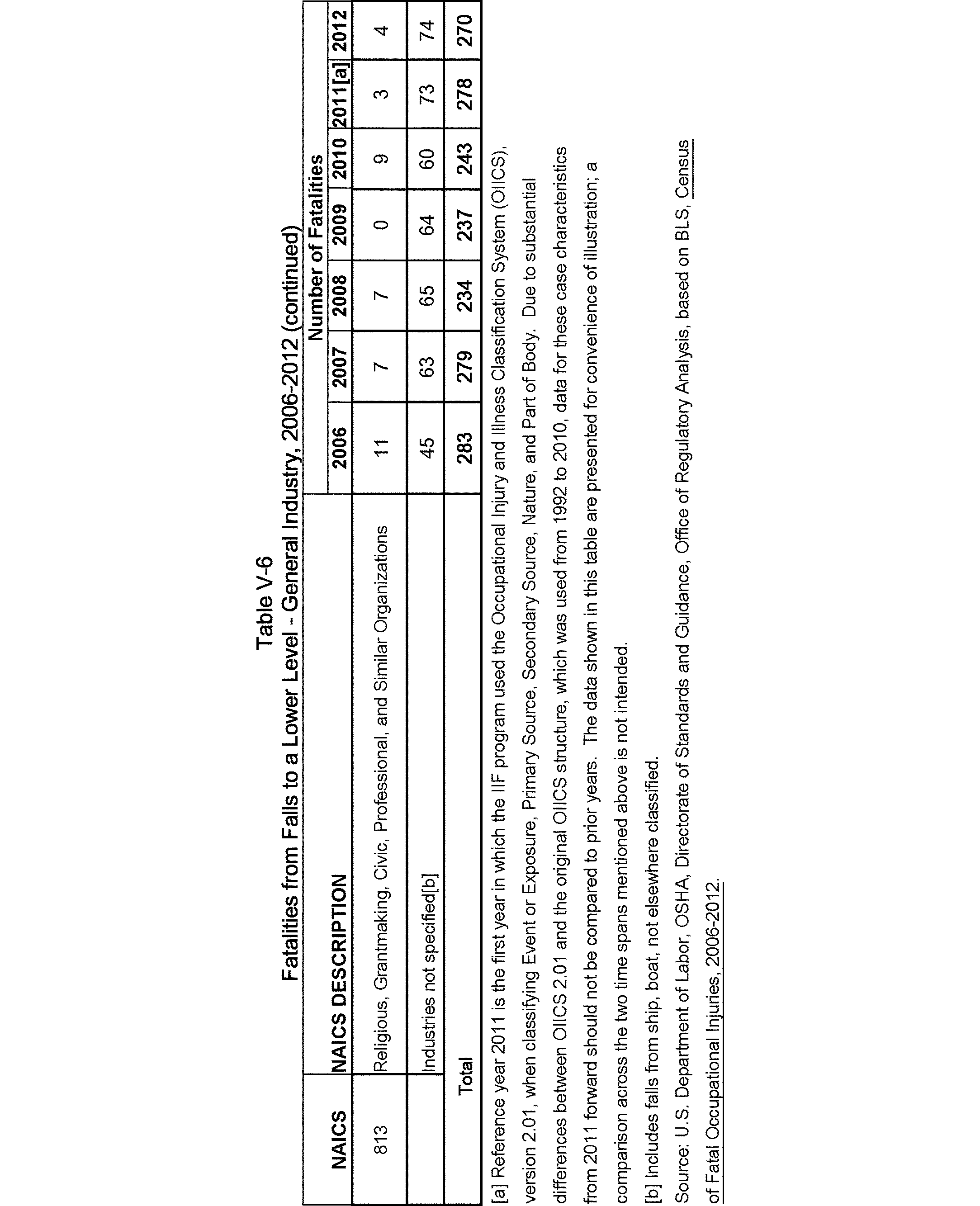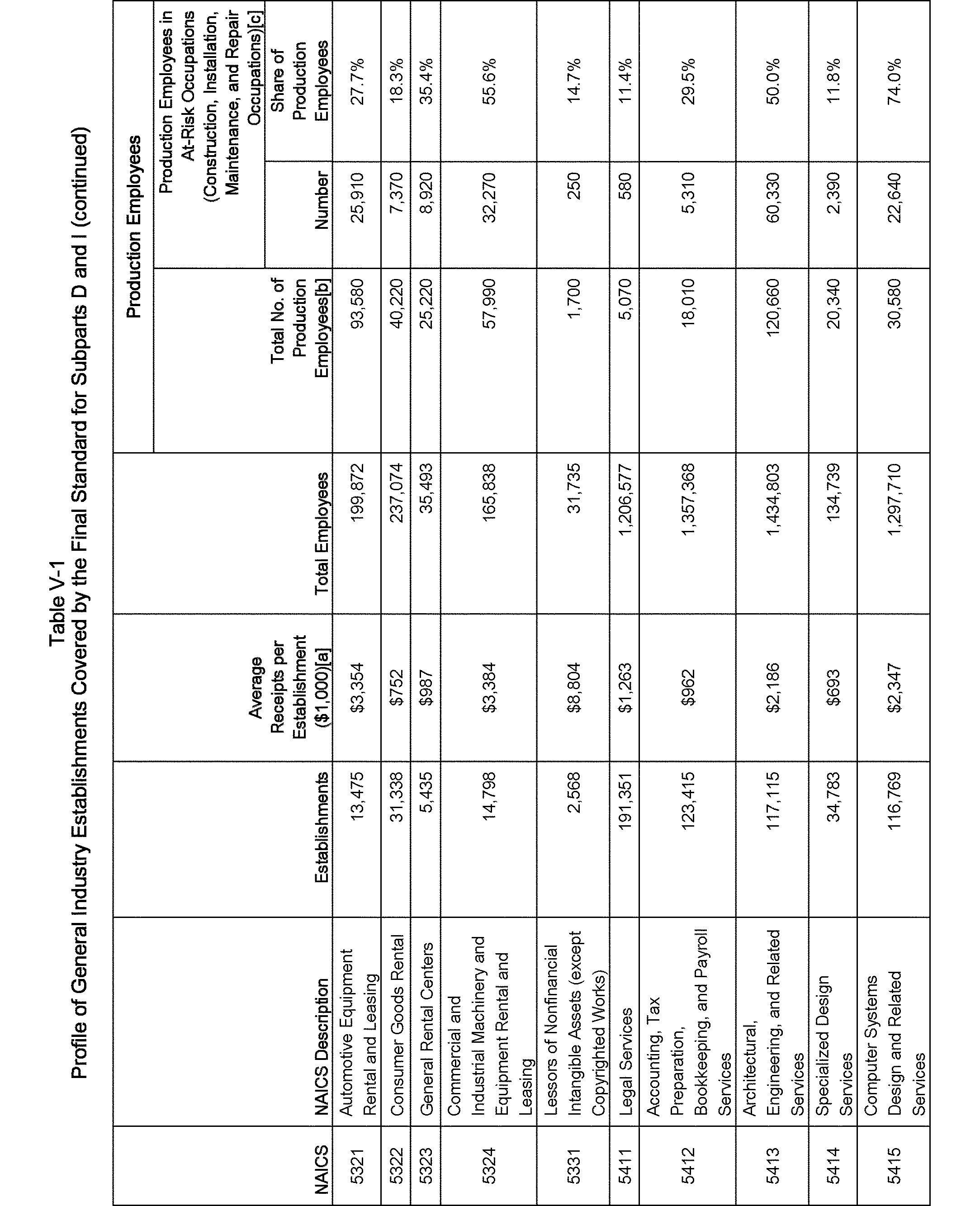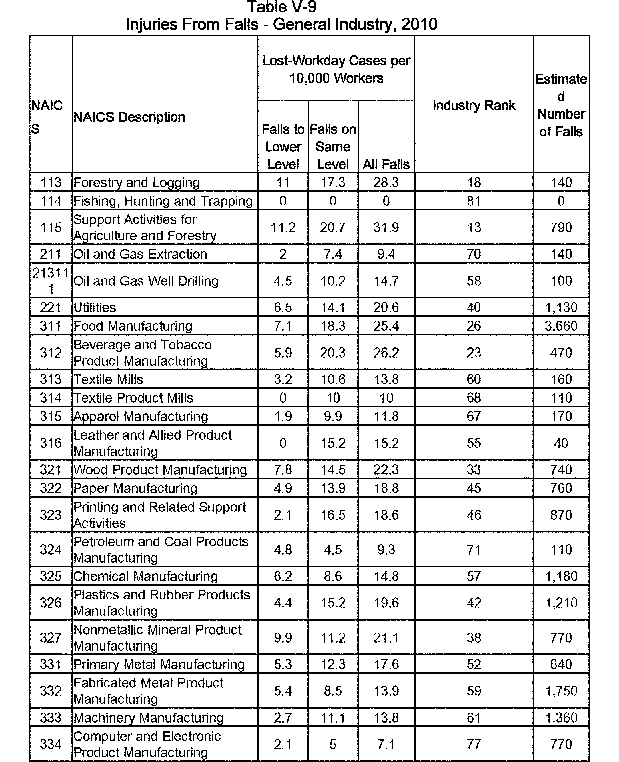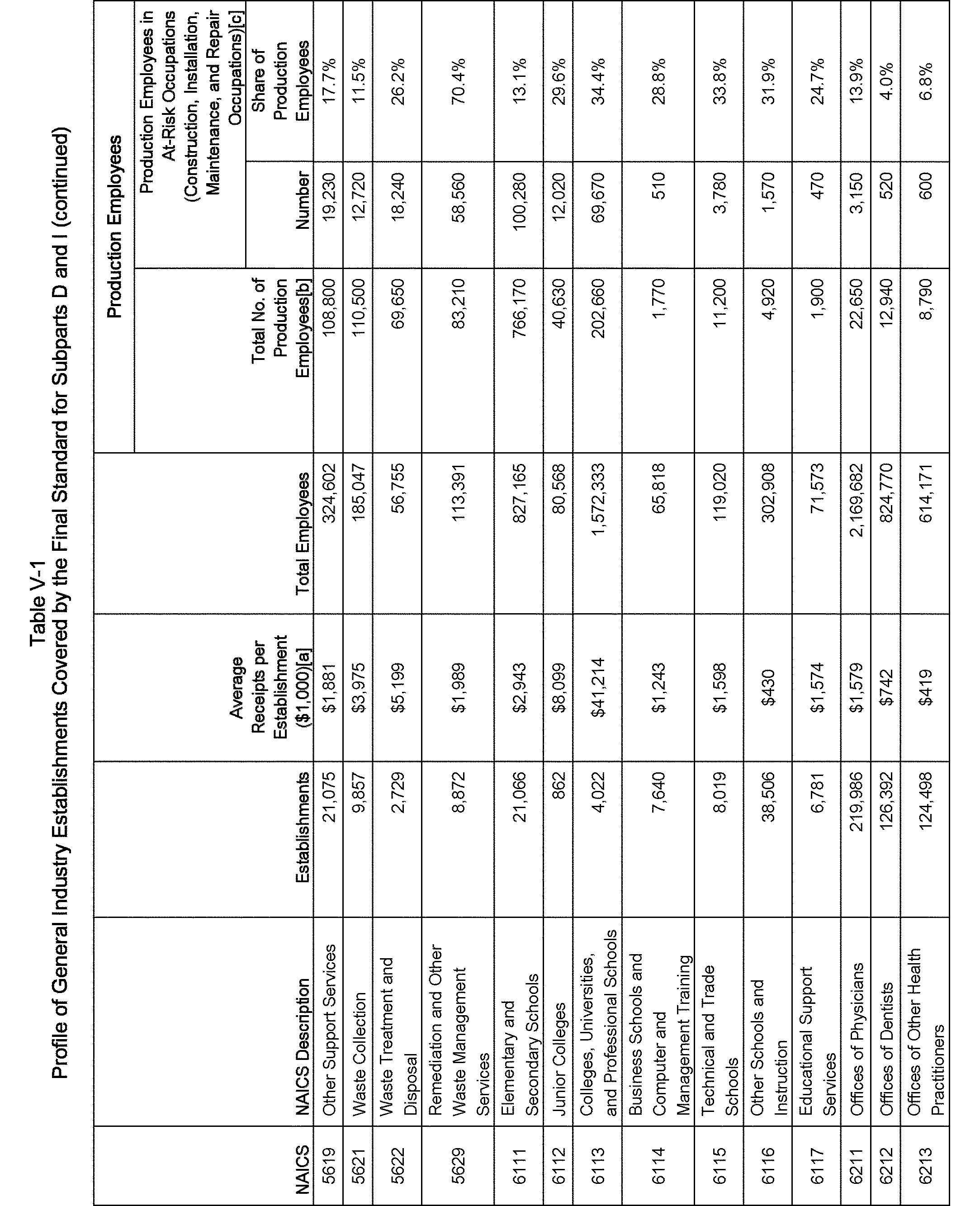 Relying on the U.S. Census' Statistics of U.S. Businesses for 2007, OSHA estimates that 6.9 million general industry establishments employing 112.3 million employees will be affected by the final standard. For the industries affected by the final standard, OSHA examined fatalities and lost-workday injuries for falls to a lower level.