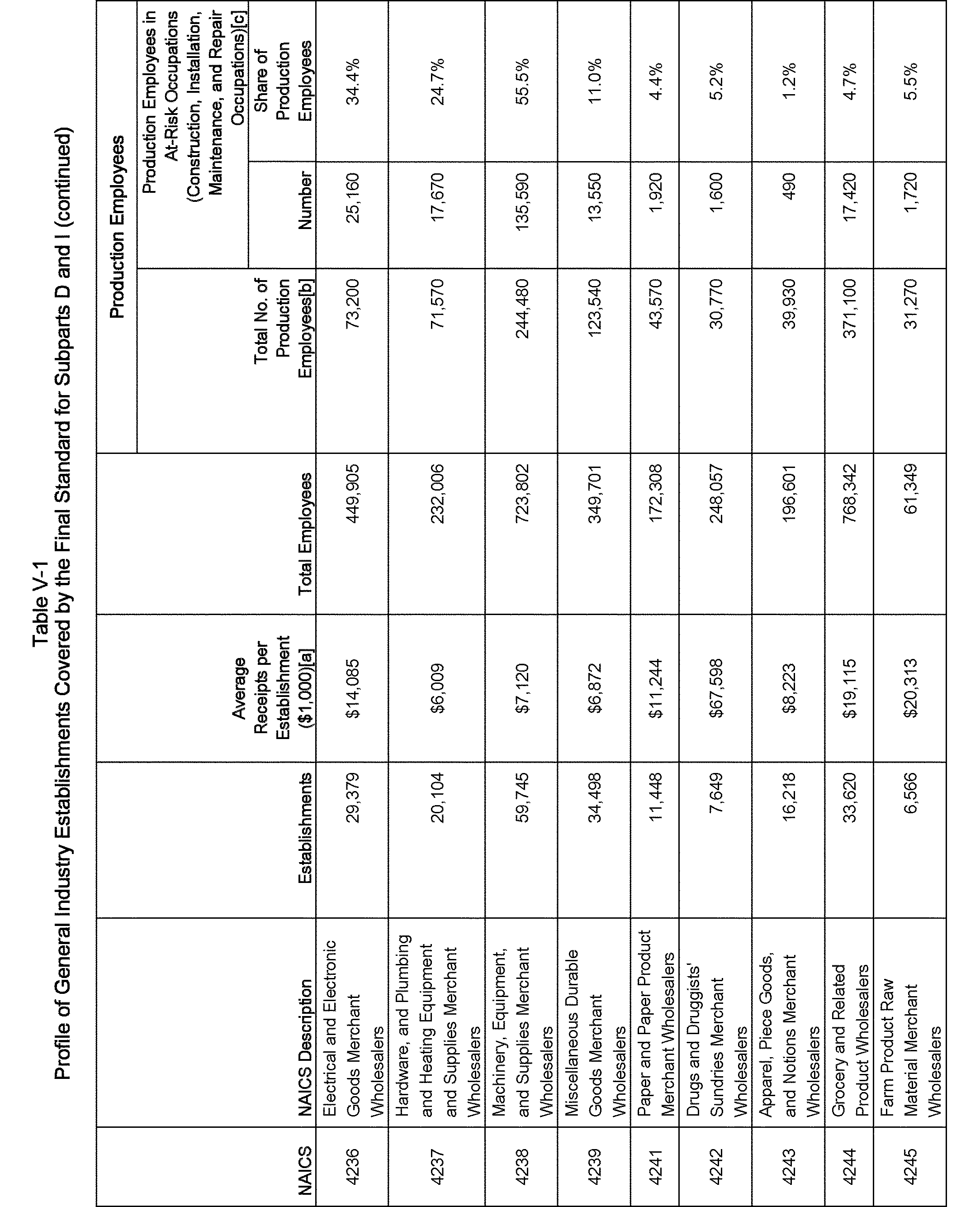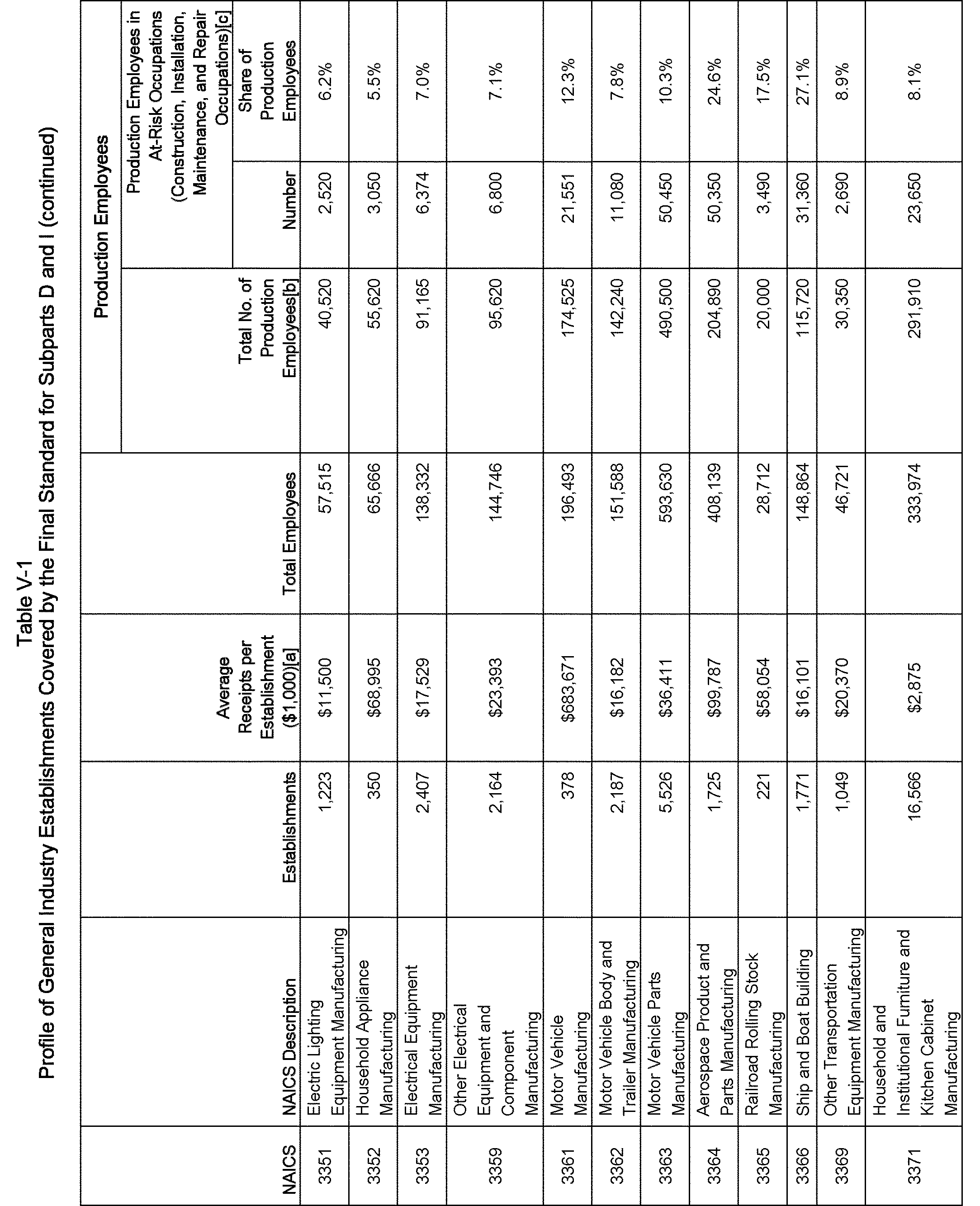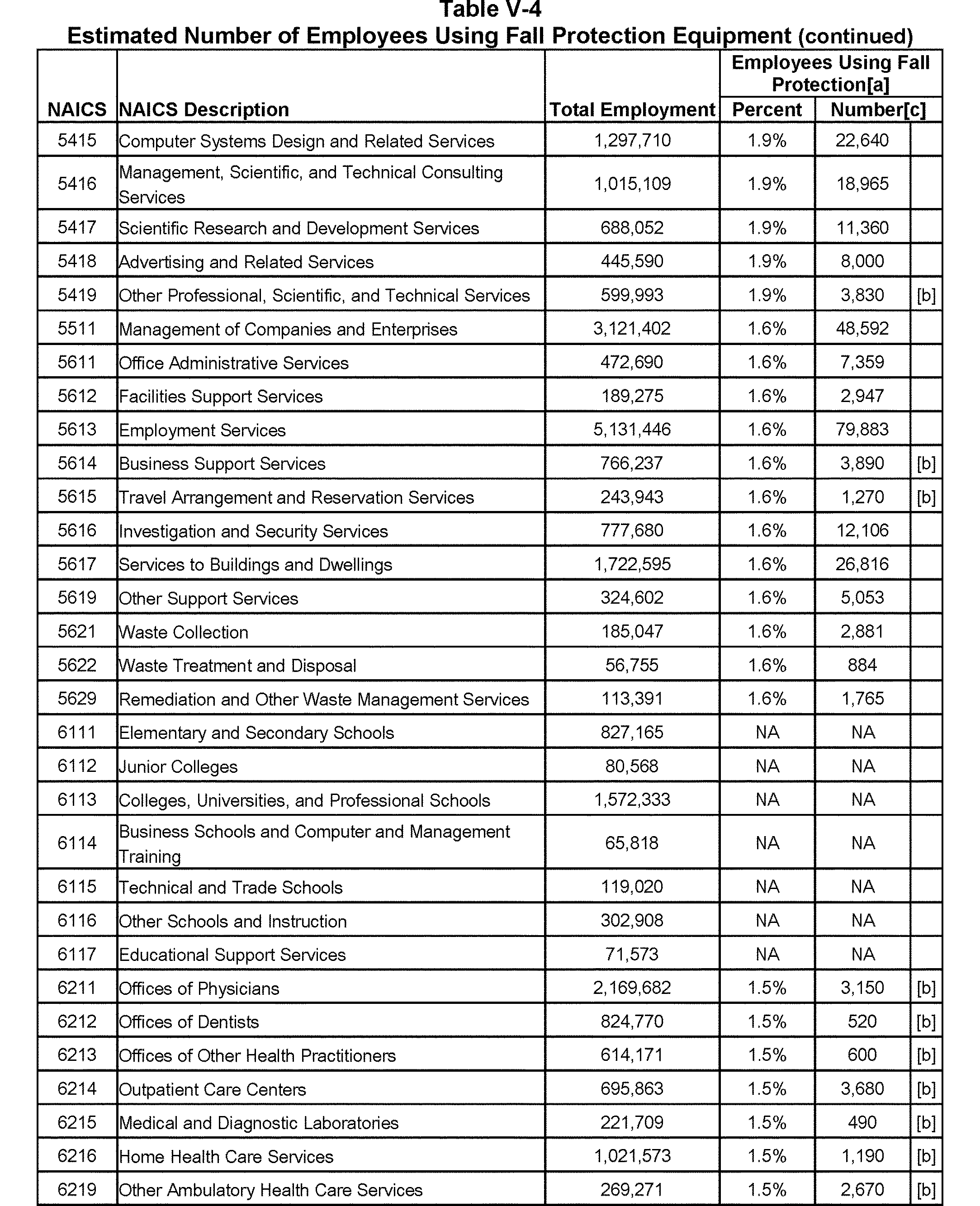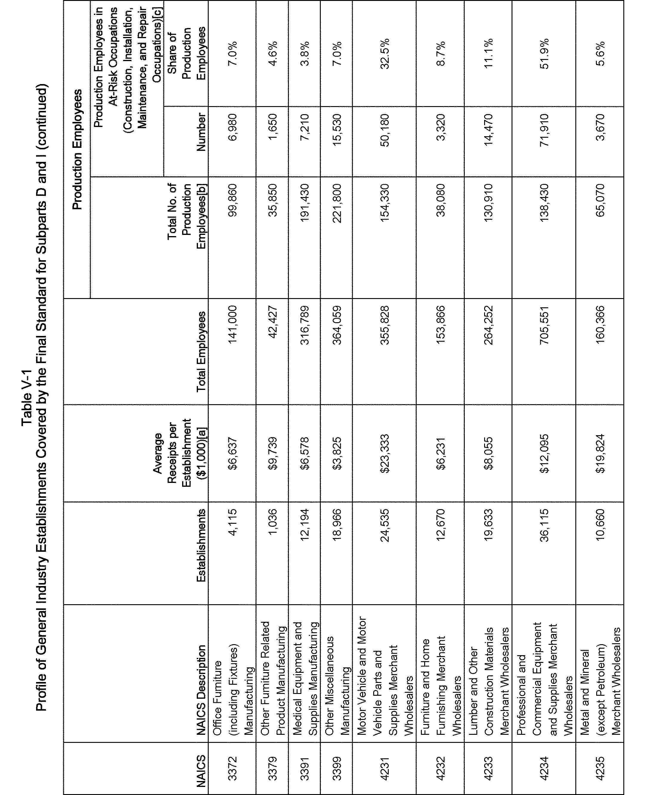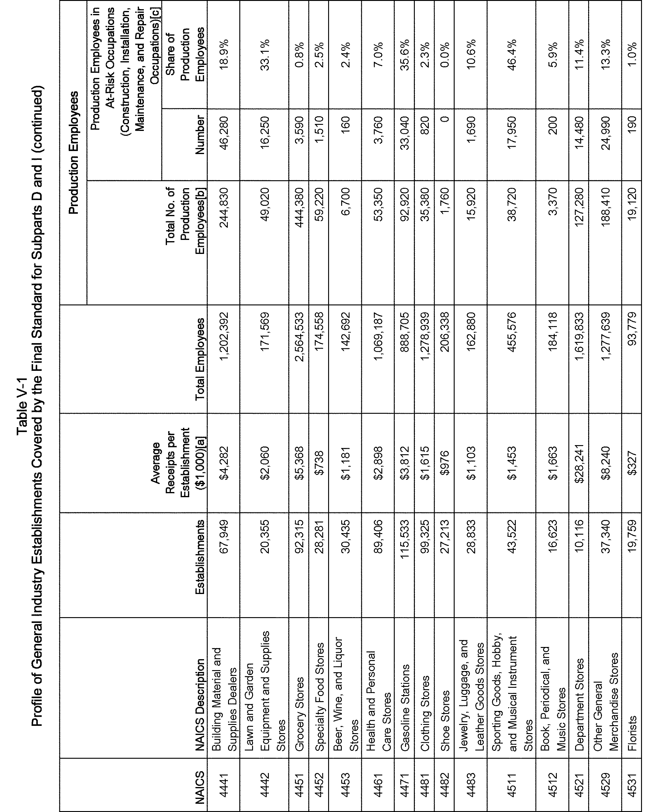Relying on the U.S. Census' Statistics of U.S. Businesses for 2007, OSHA estimates that 6.9 million general industry establishments employing 112.3 million employees will be affected by the final standard. For the industries affected by the final standard, OSHA examined fatalities and lost-workday injuries for falls to a lower level.