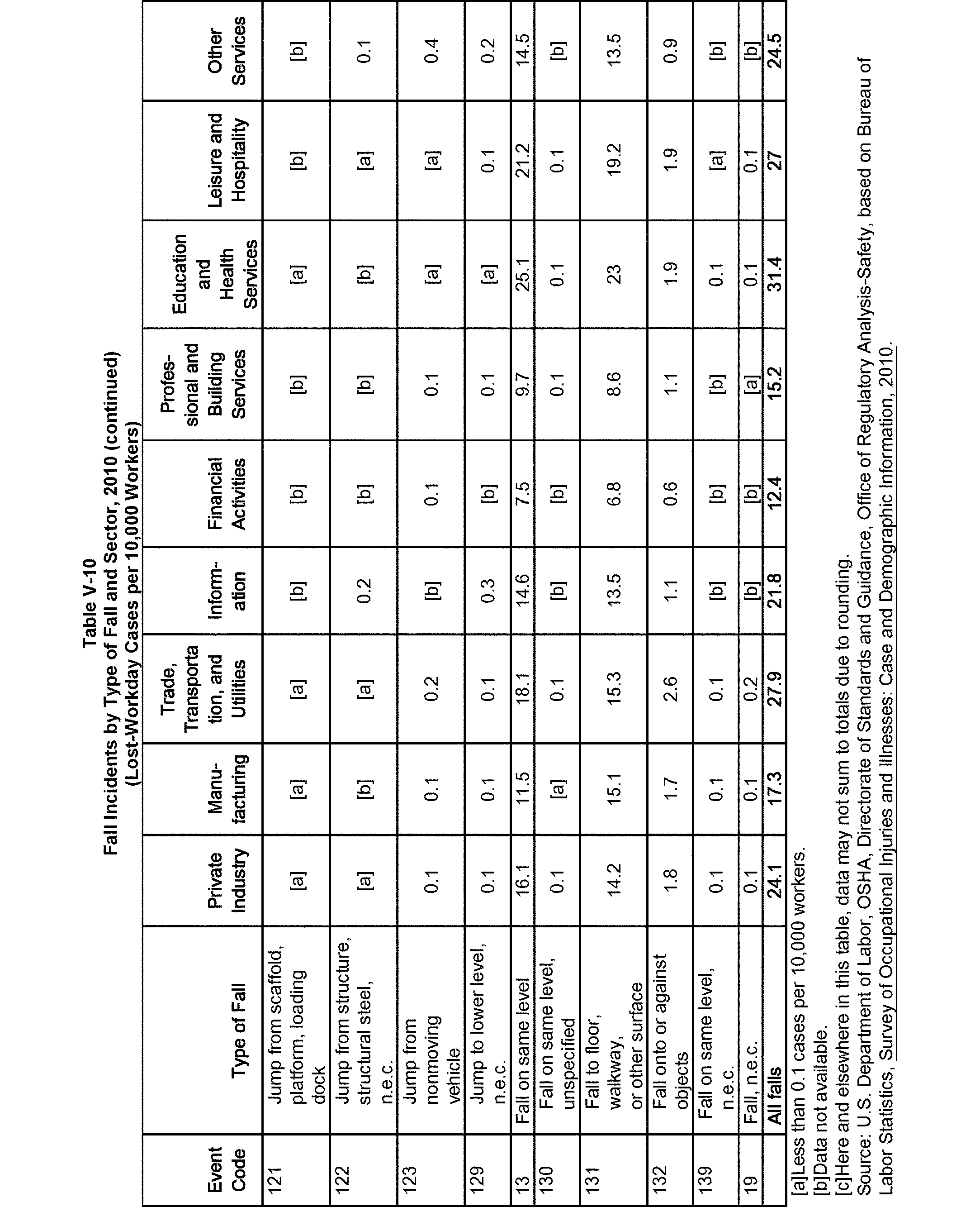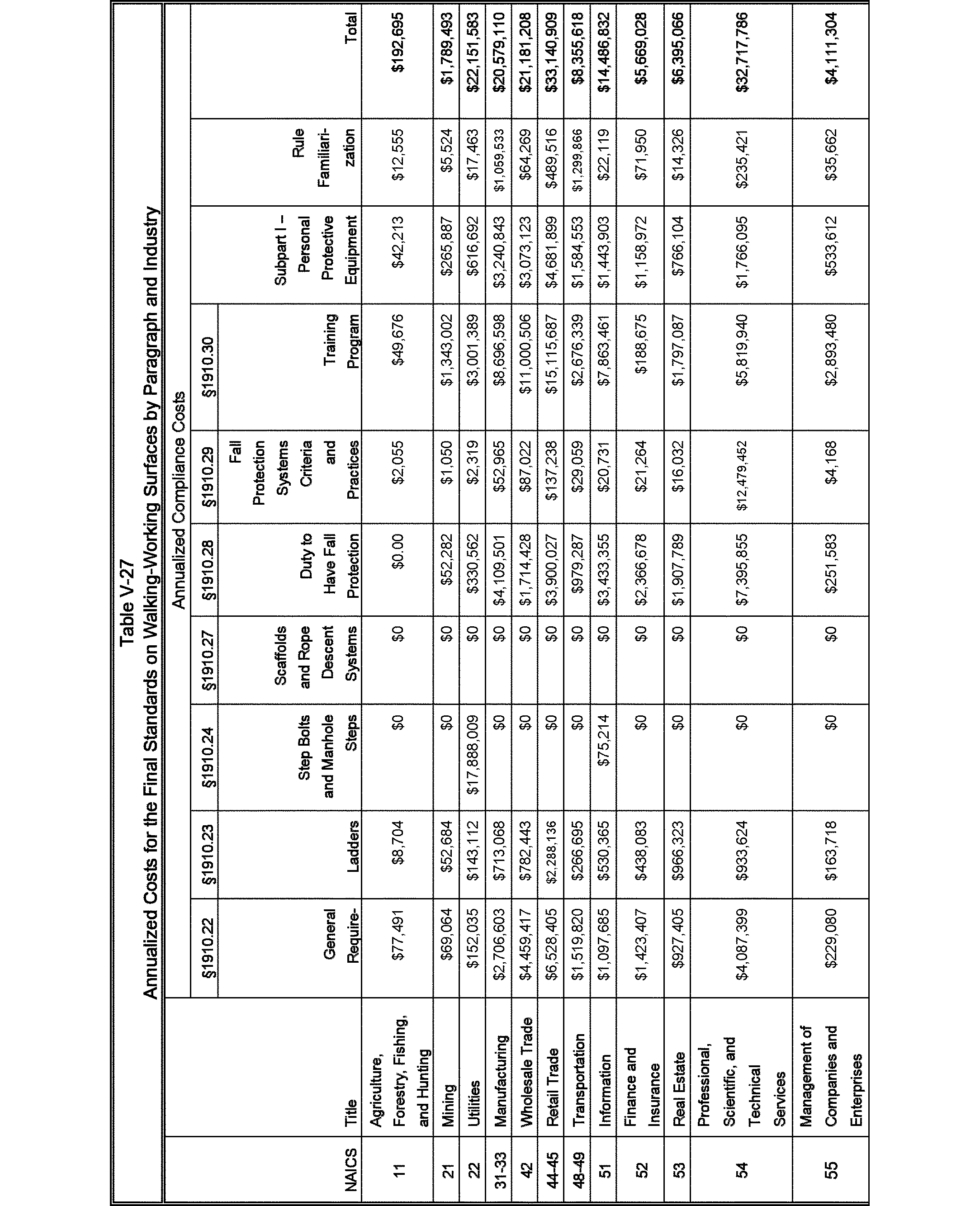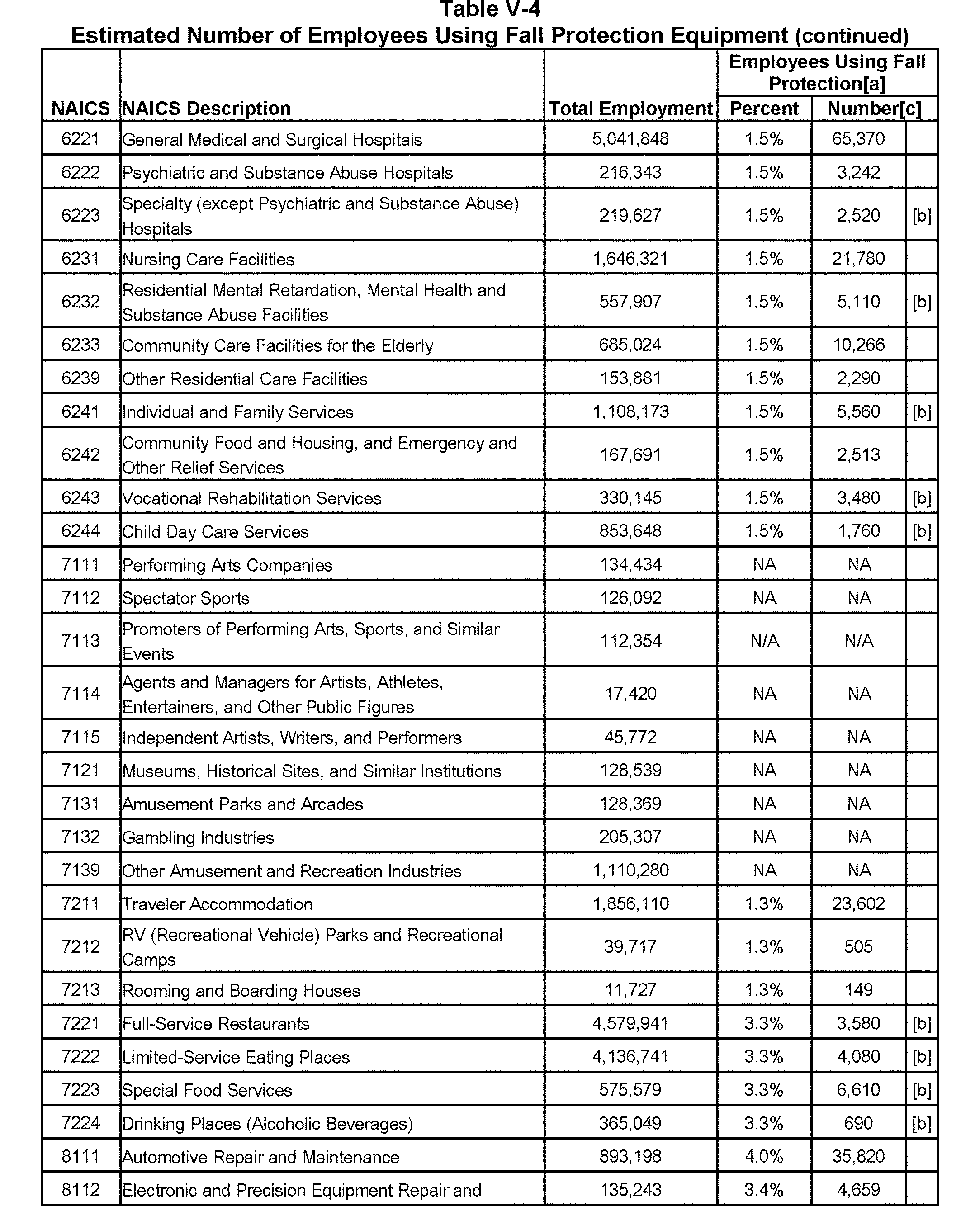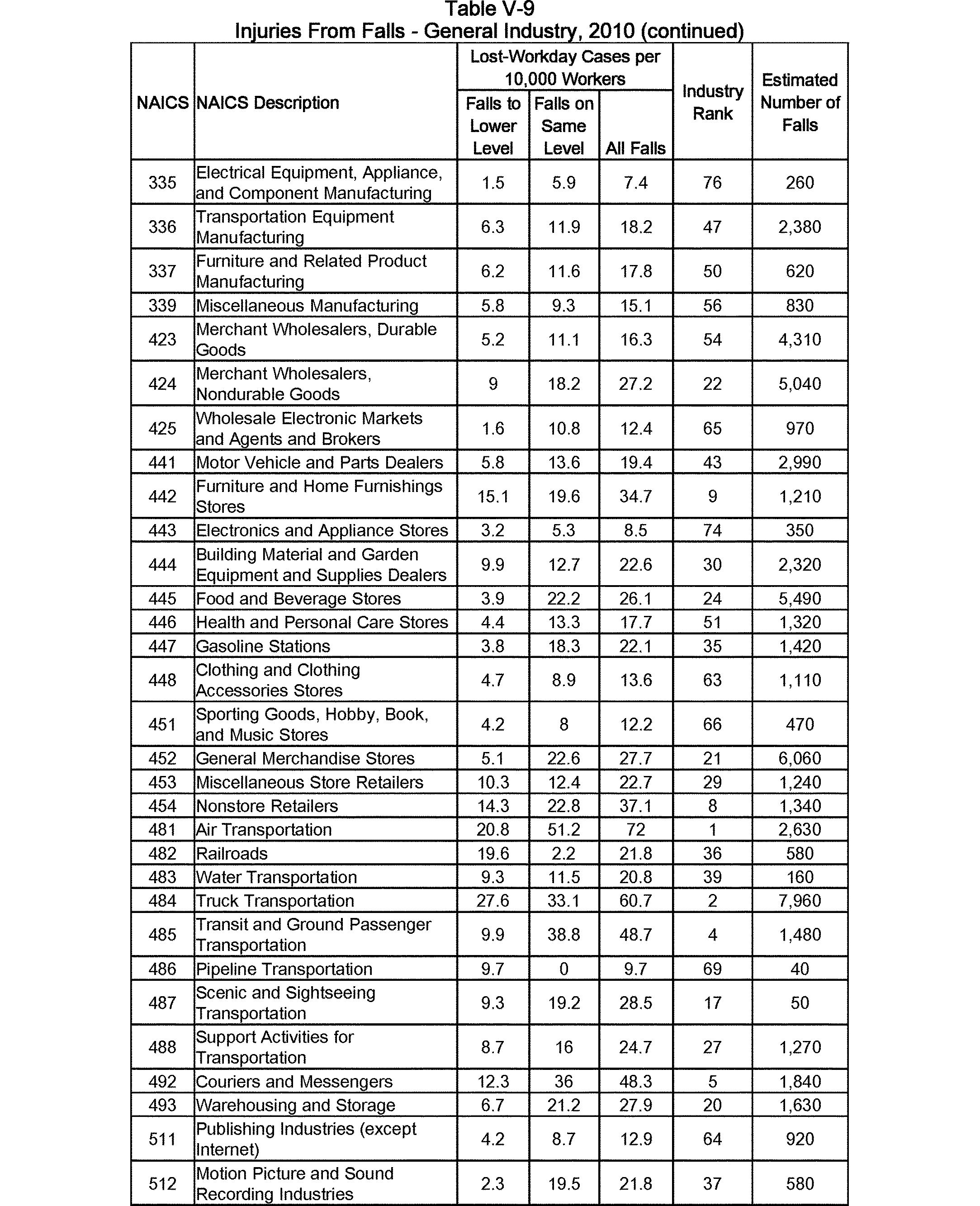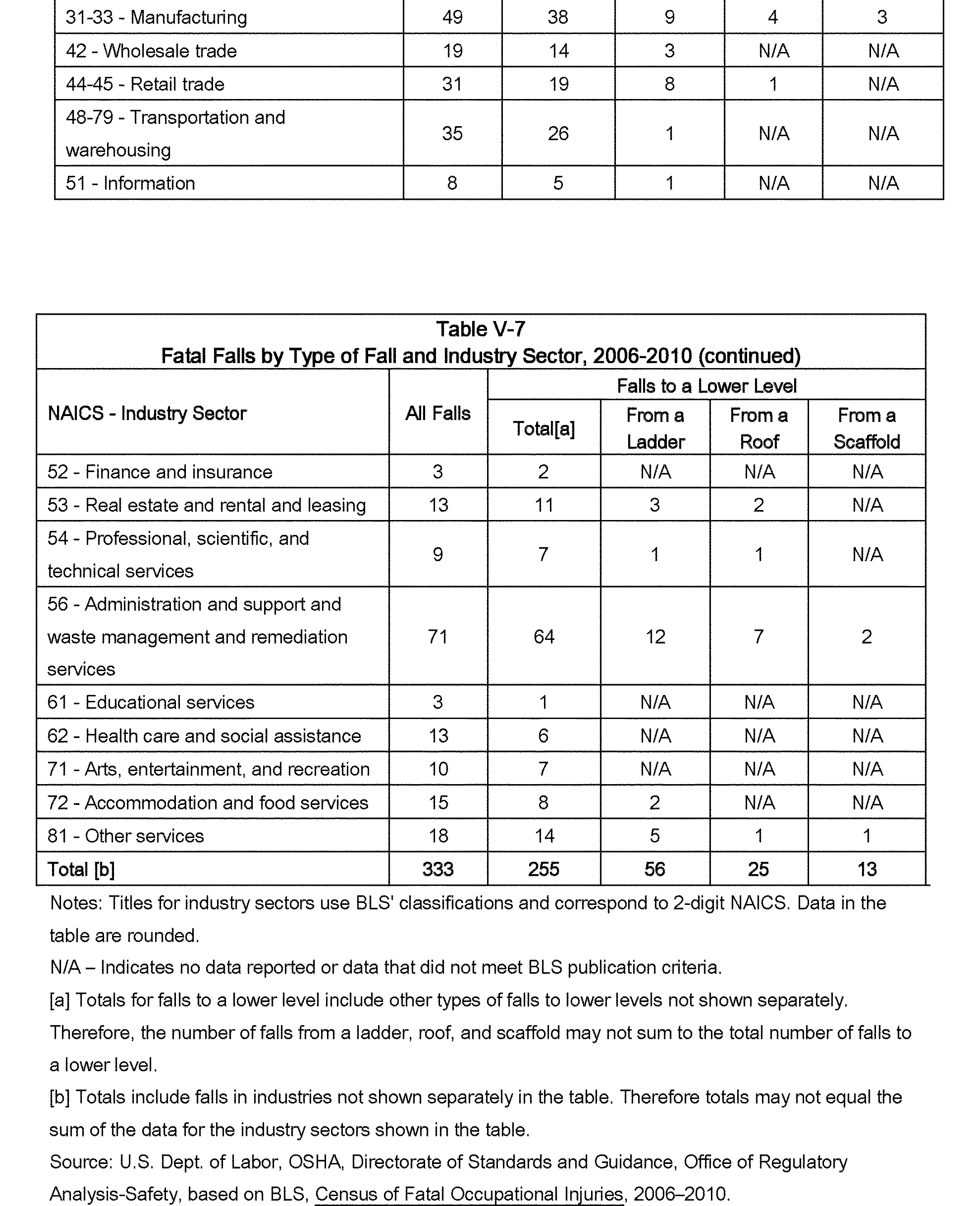 Relying on the U.S. Census' Statistics of U.S. Businesses for 2007, OSHA estimates that 6.9 million general industry establishments employing 112.3 million employees will be affected by the final standard. For the industries affected by the final standard, OSHA examined fatalities and lost-workday injuries for falls to a lower level.