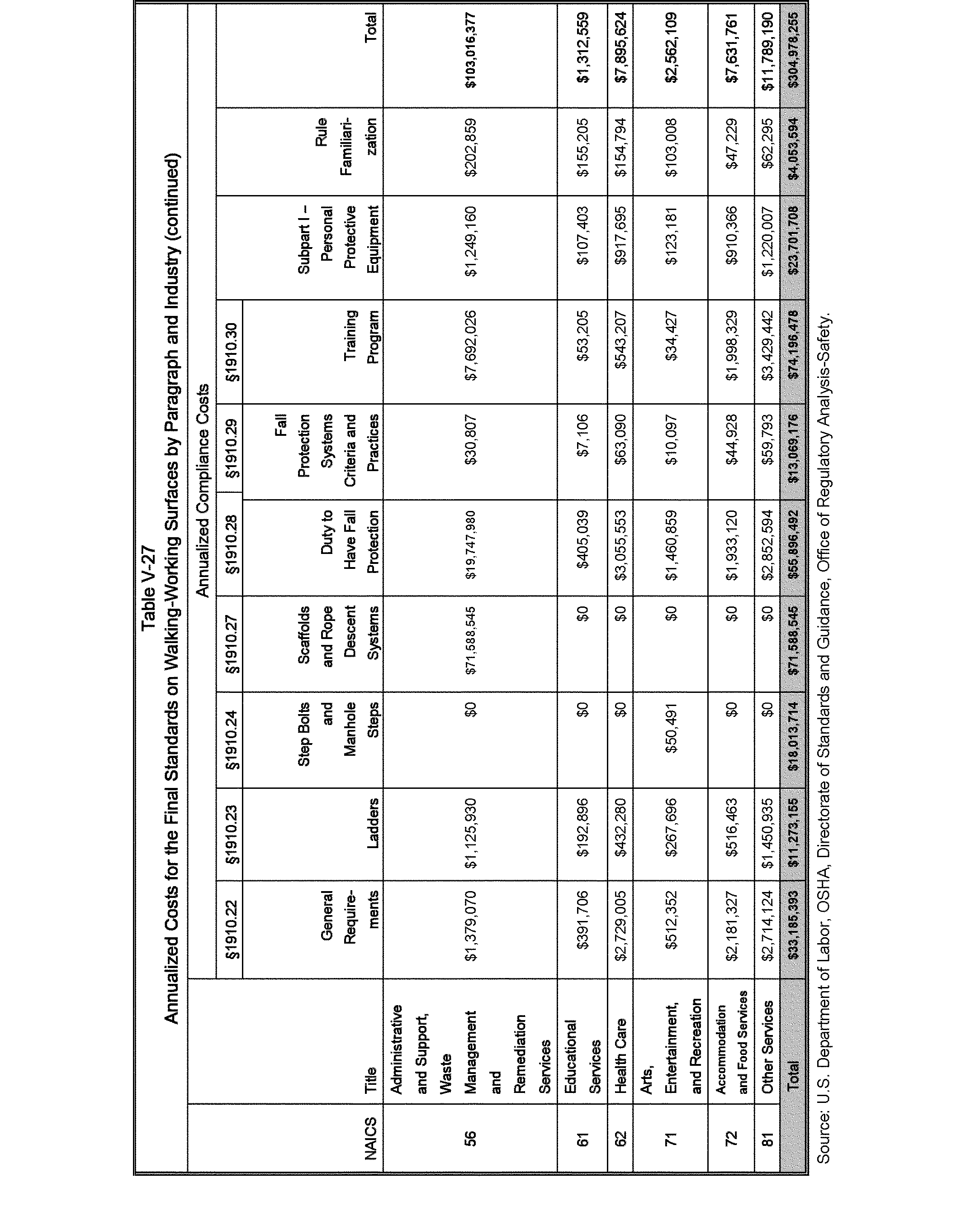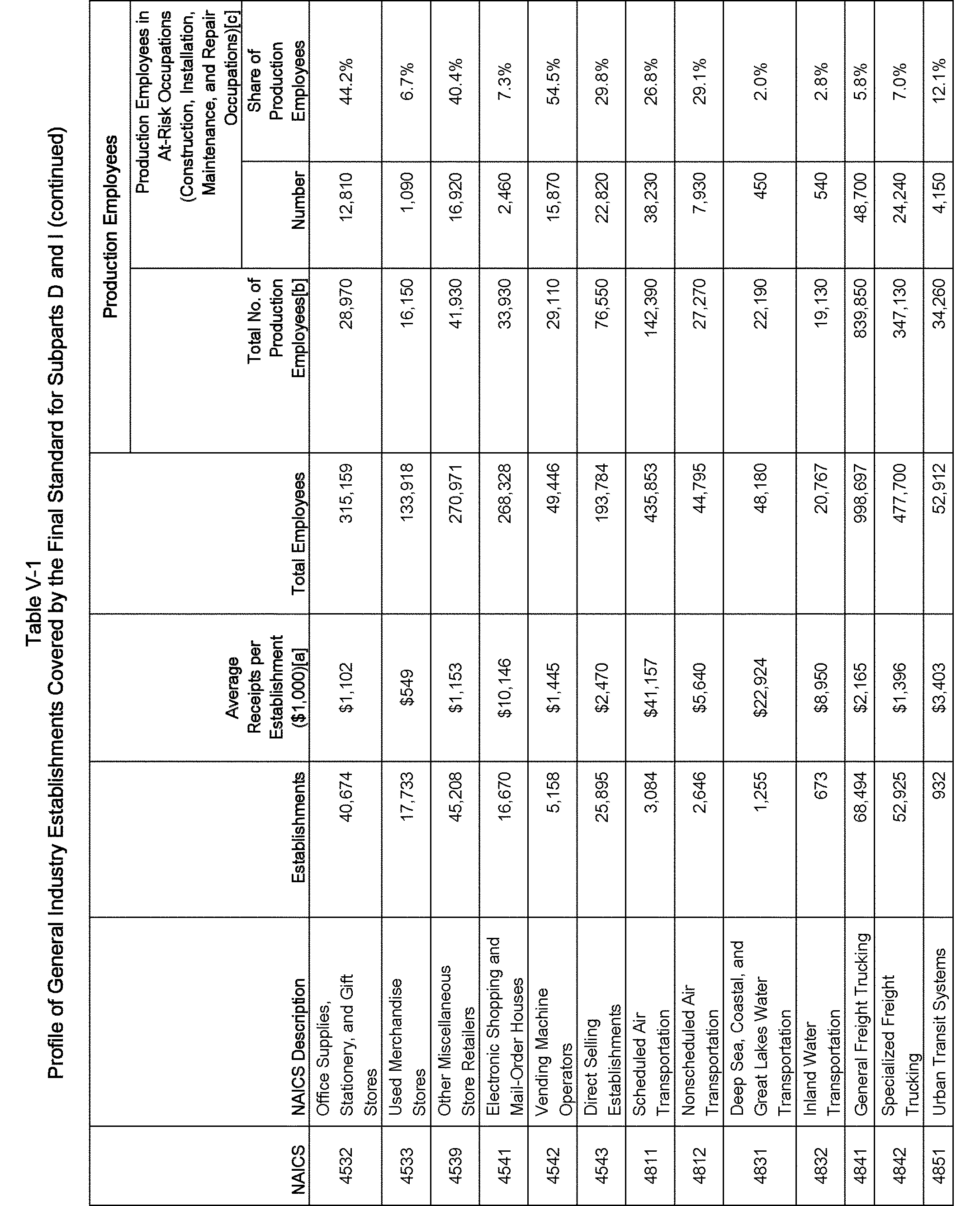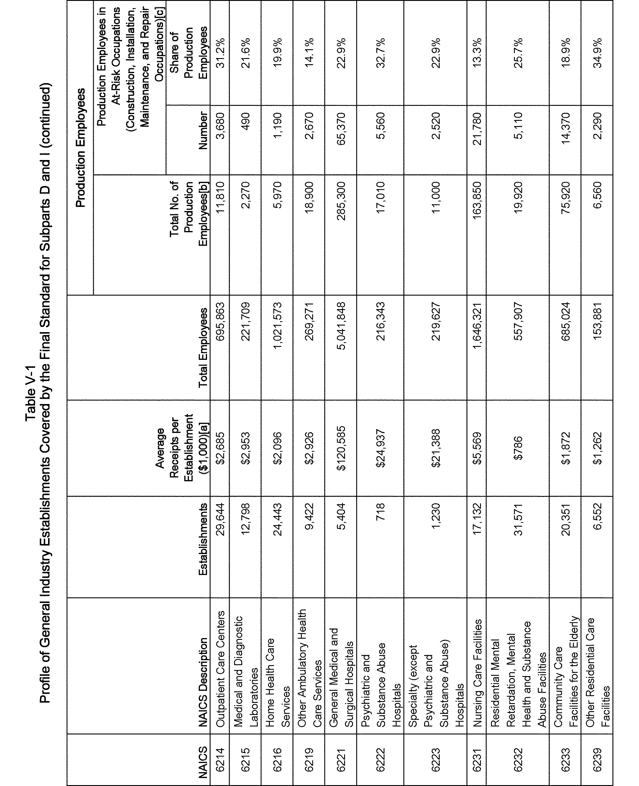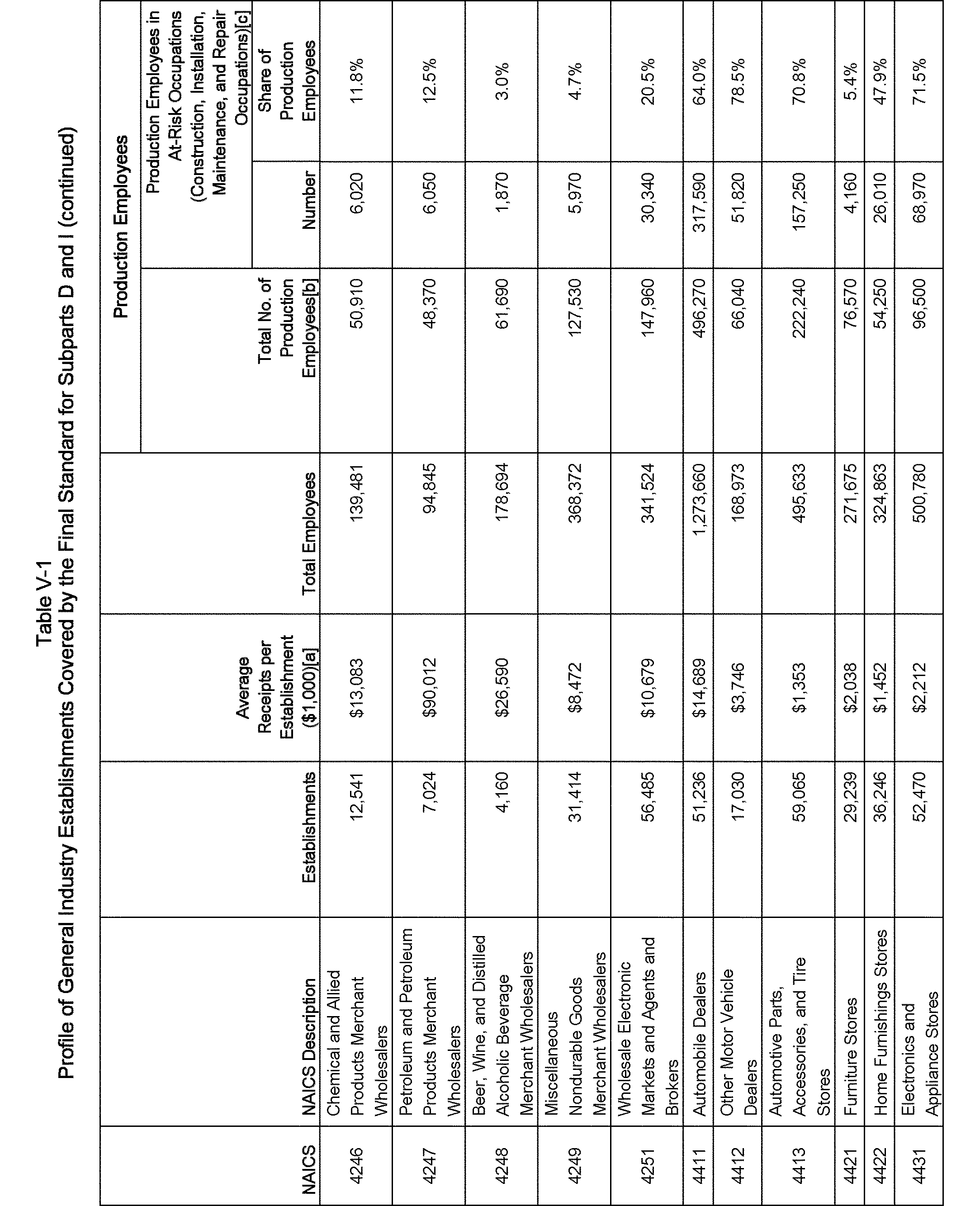 Relying on the U.S. Census' Statistics of U.S. Businesses for 2007, OSHA estimates that 6.9 million general industry establishments employing 112.3 million employees will be affected by the final standard. For the industries affected by the final standard, OSHA examined fatalities and lost-workday injuries for falls to a lower level.
