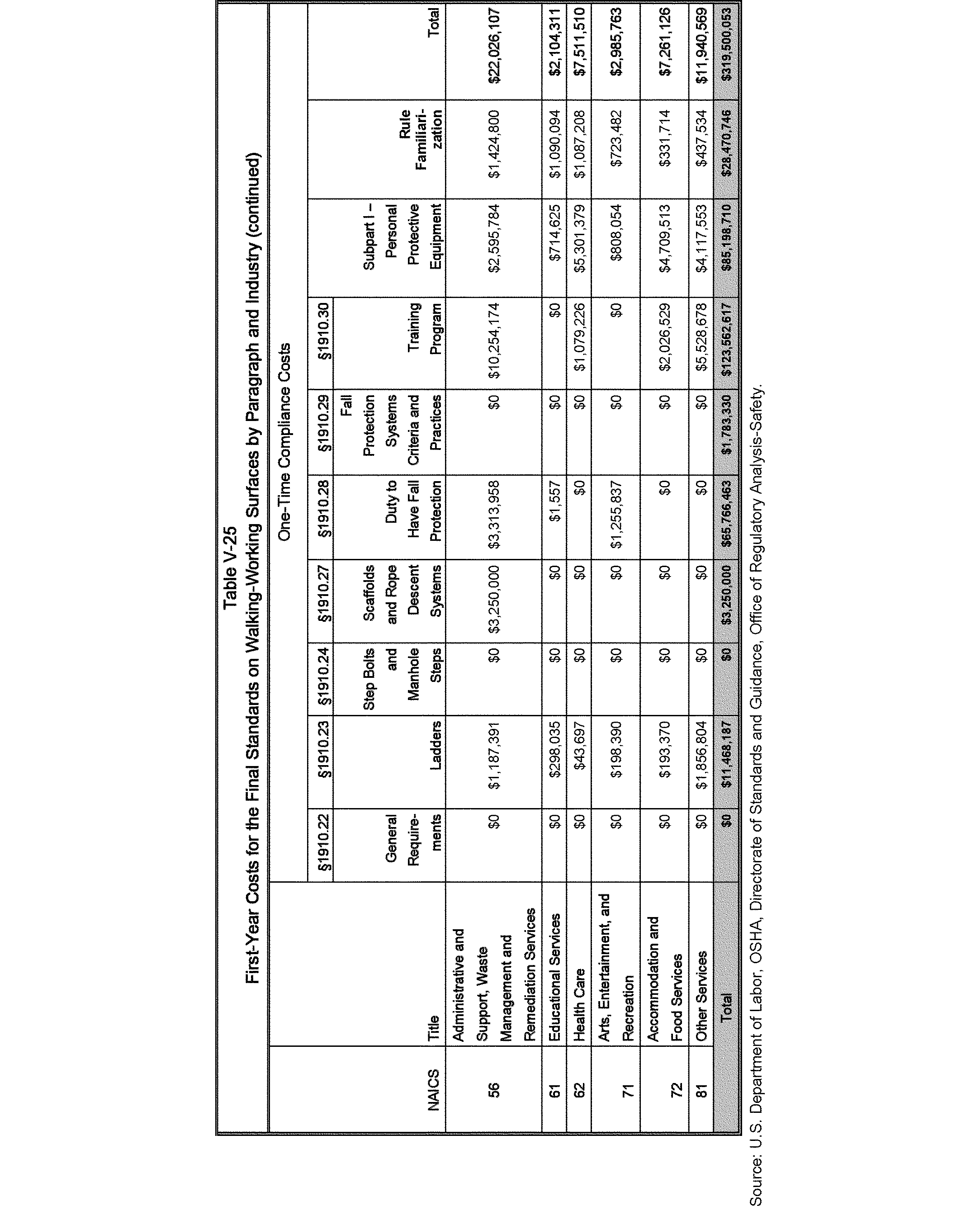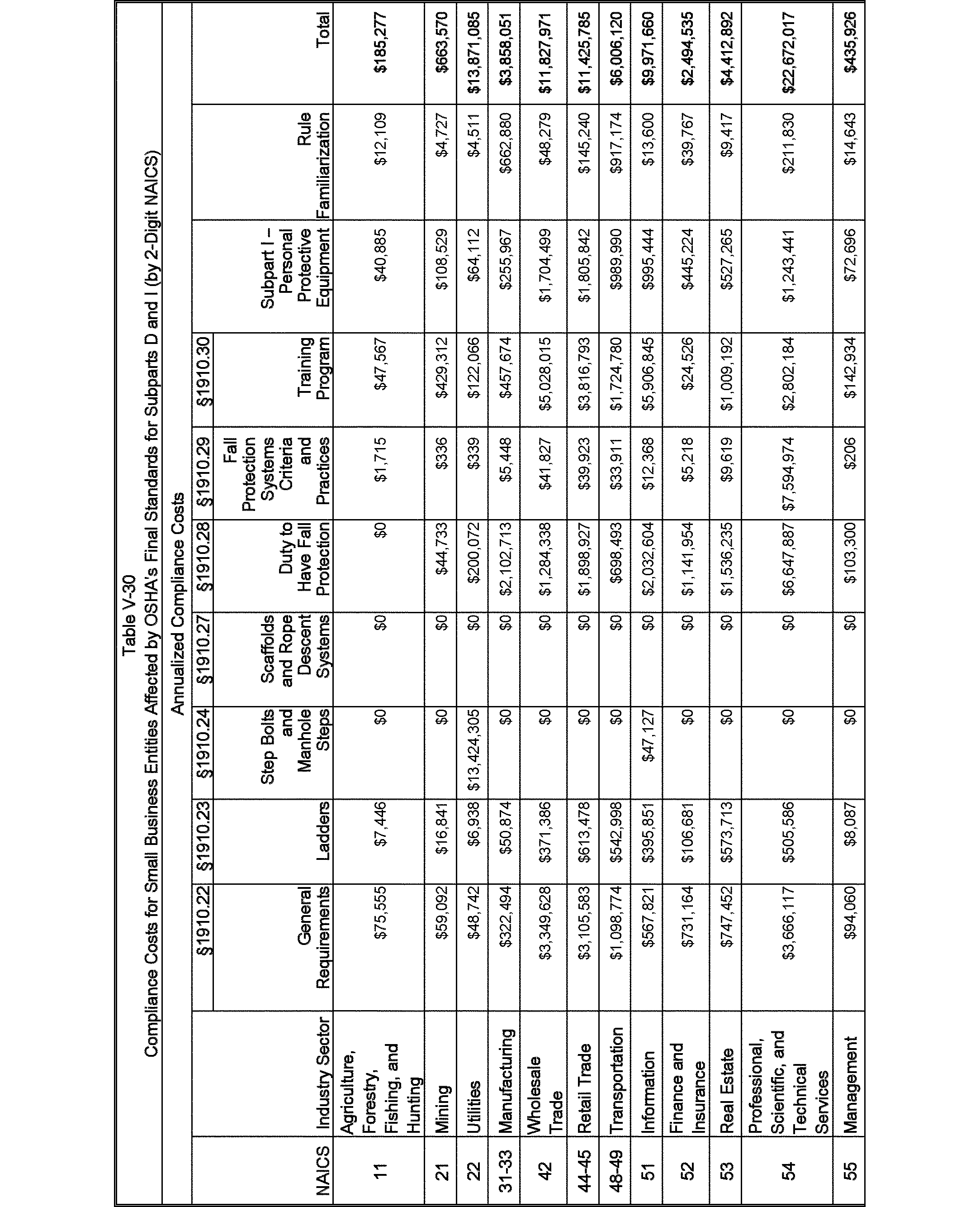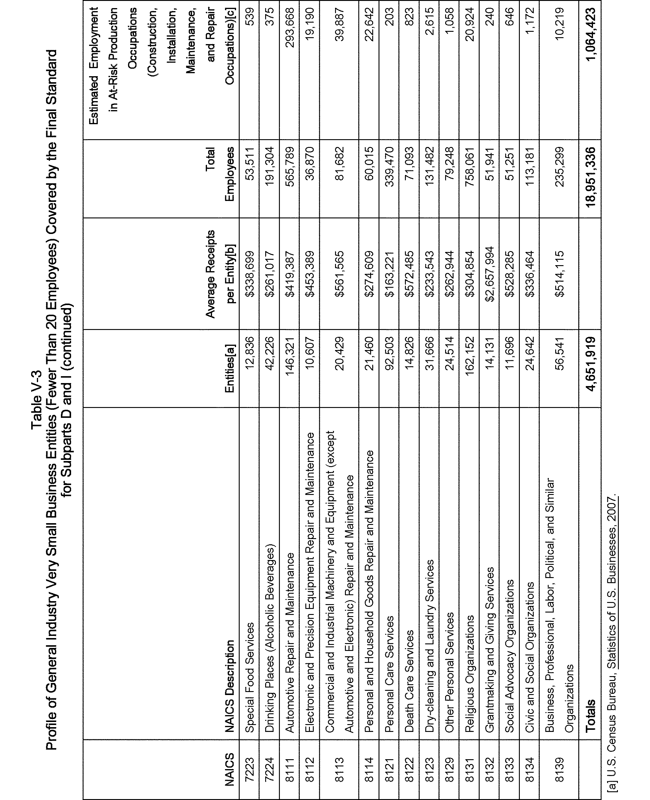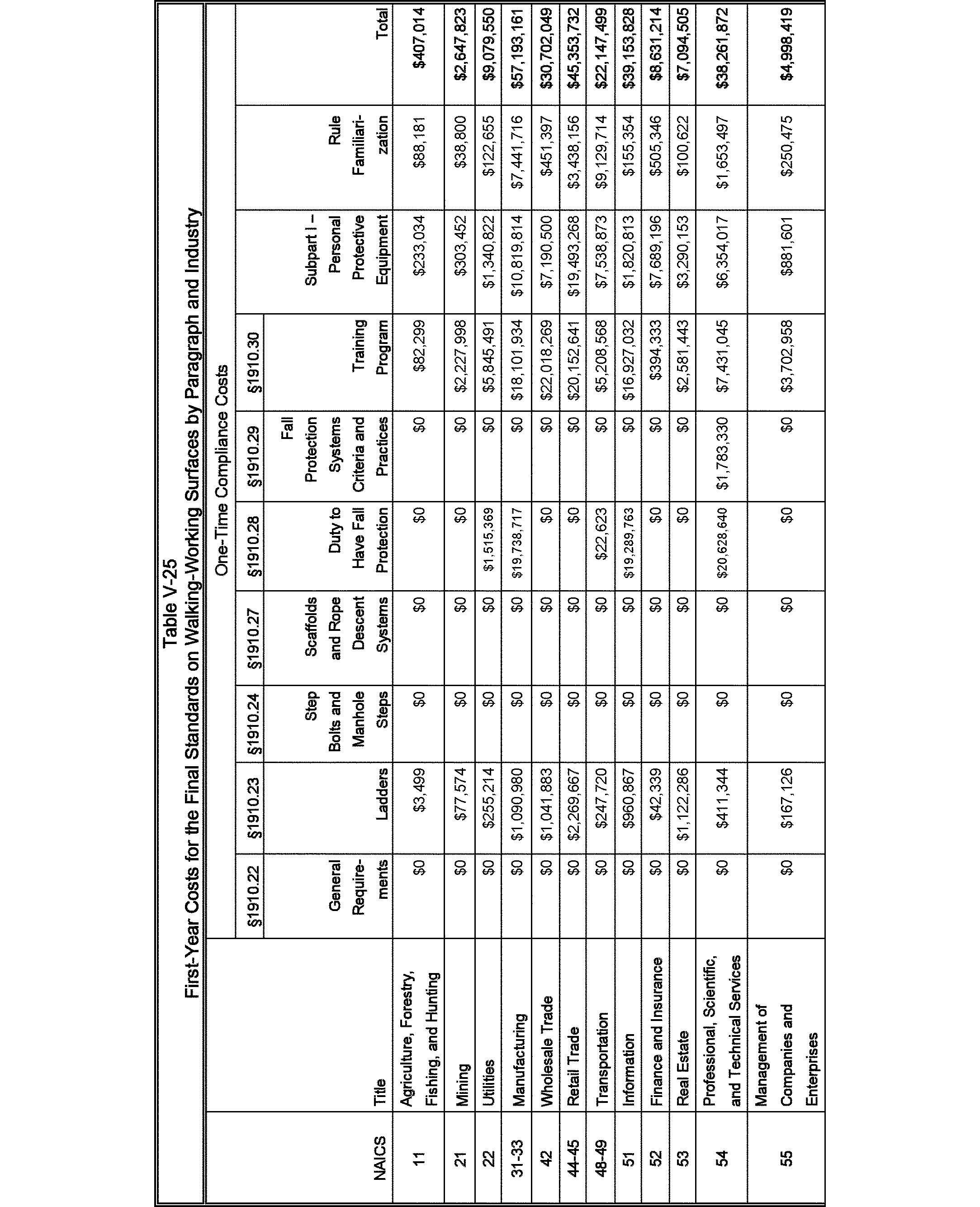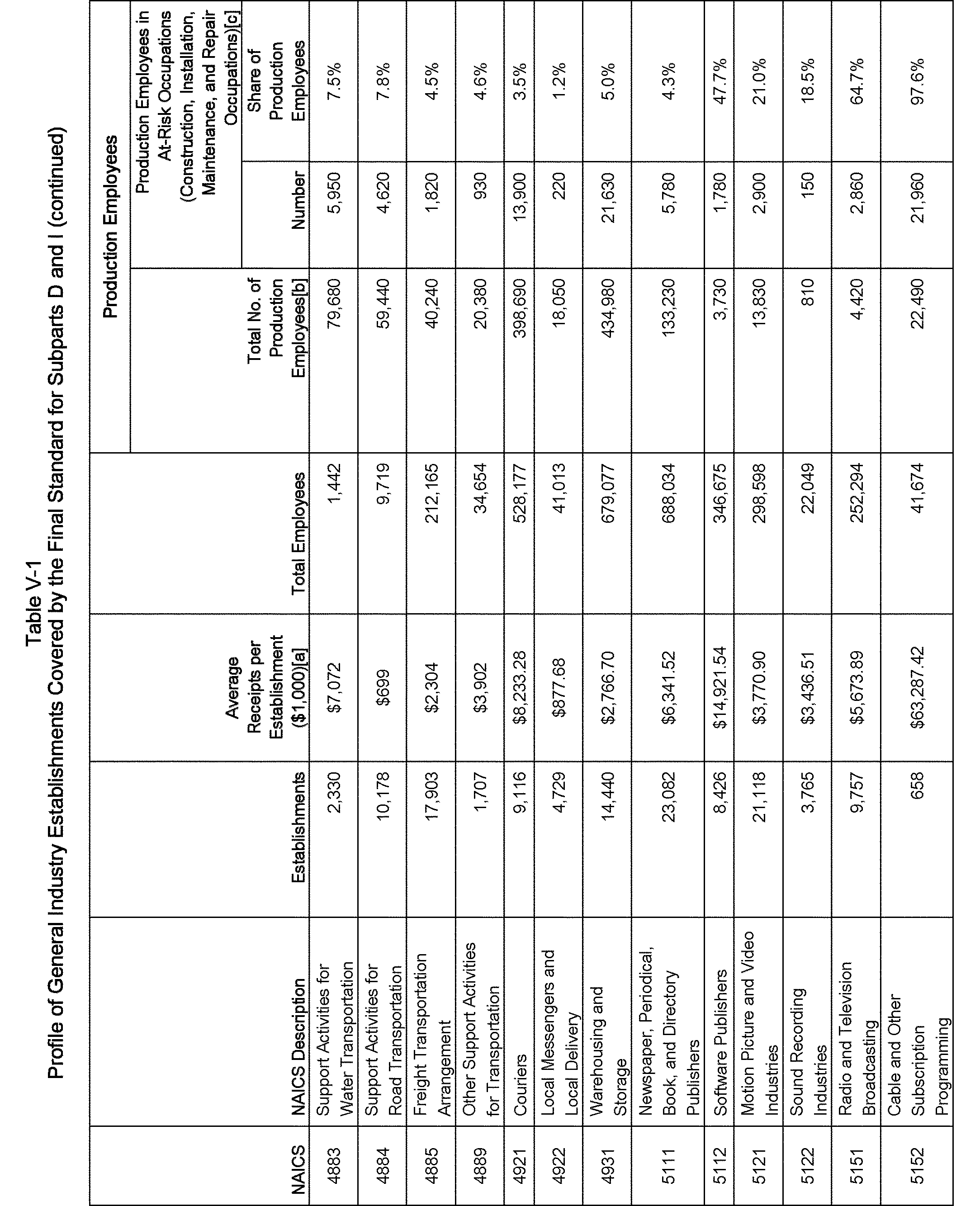 Relying on the U.S. Census' Statistics of U.S. Businesses for 2007, OSHA estimates that 6.9 million general industry establishments employing 112.3 million employees will be affected by the final standard. For the industries affected by the final standard, OSHA examined fatalities and lost-workday injuries for falls to a lower level.
