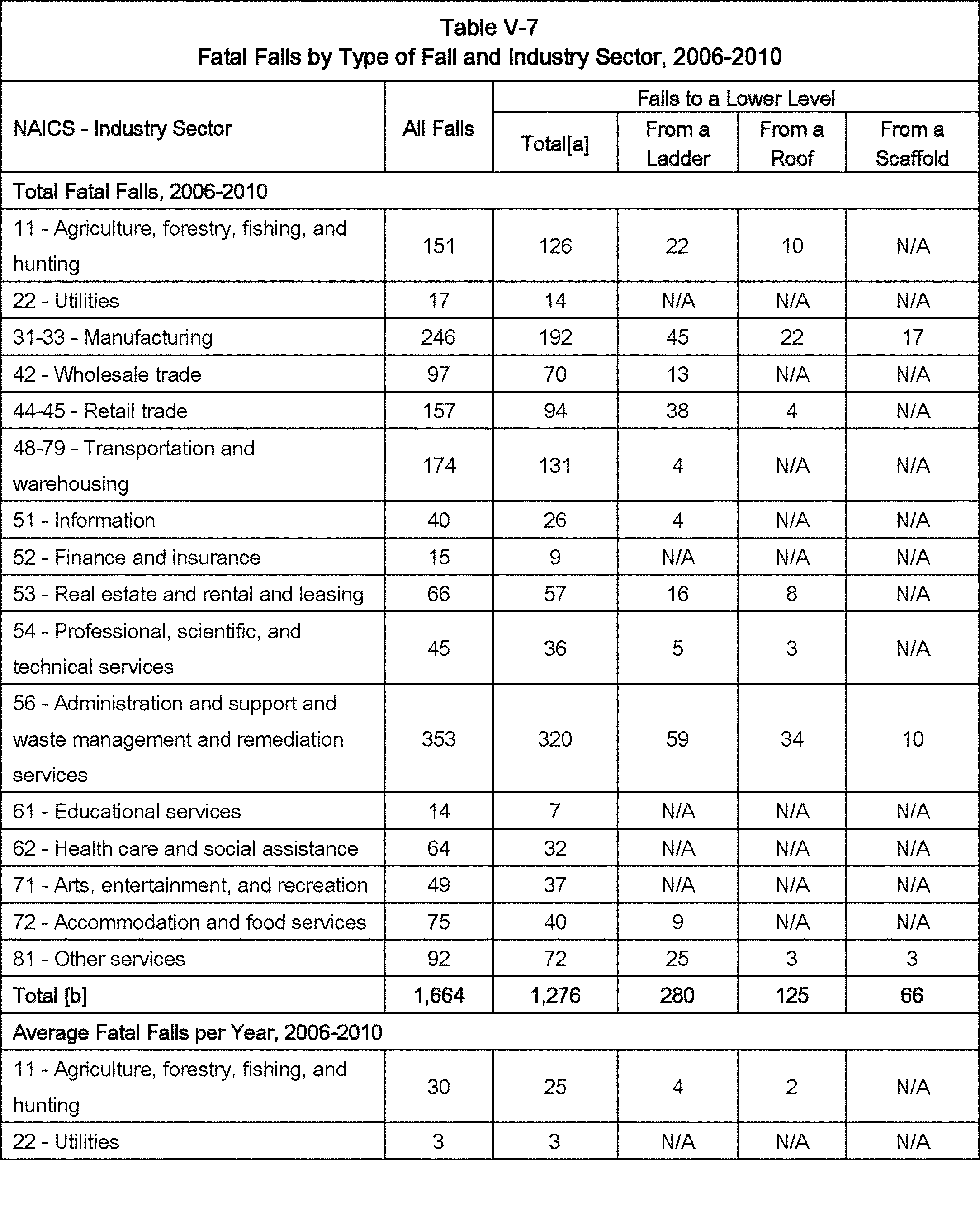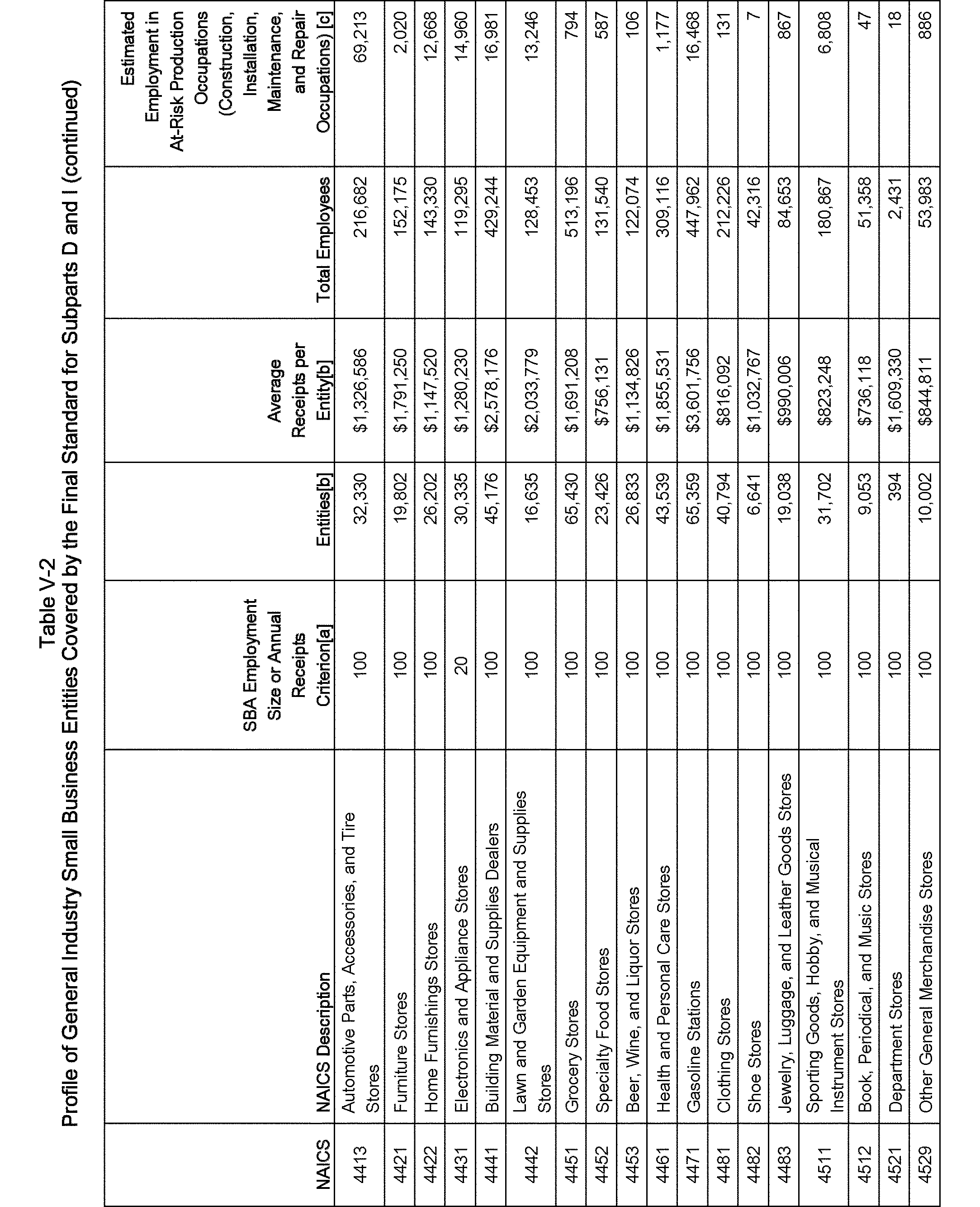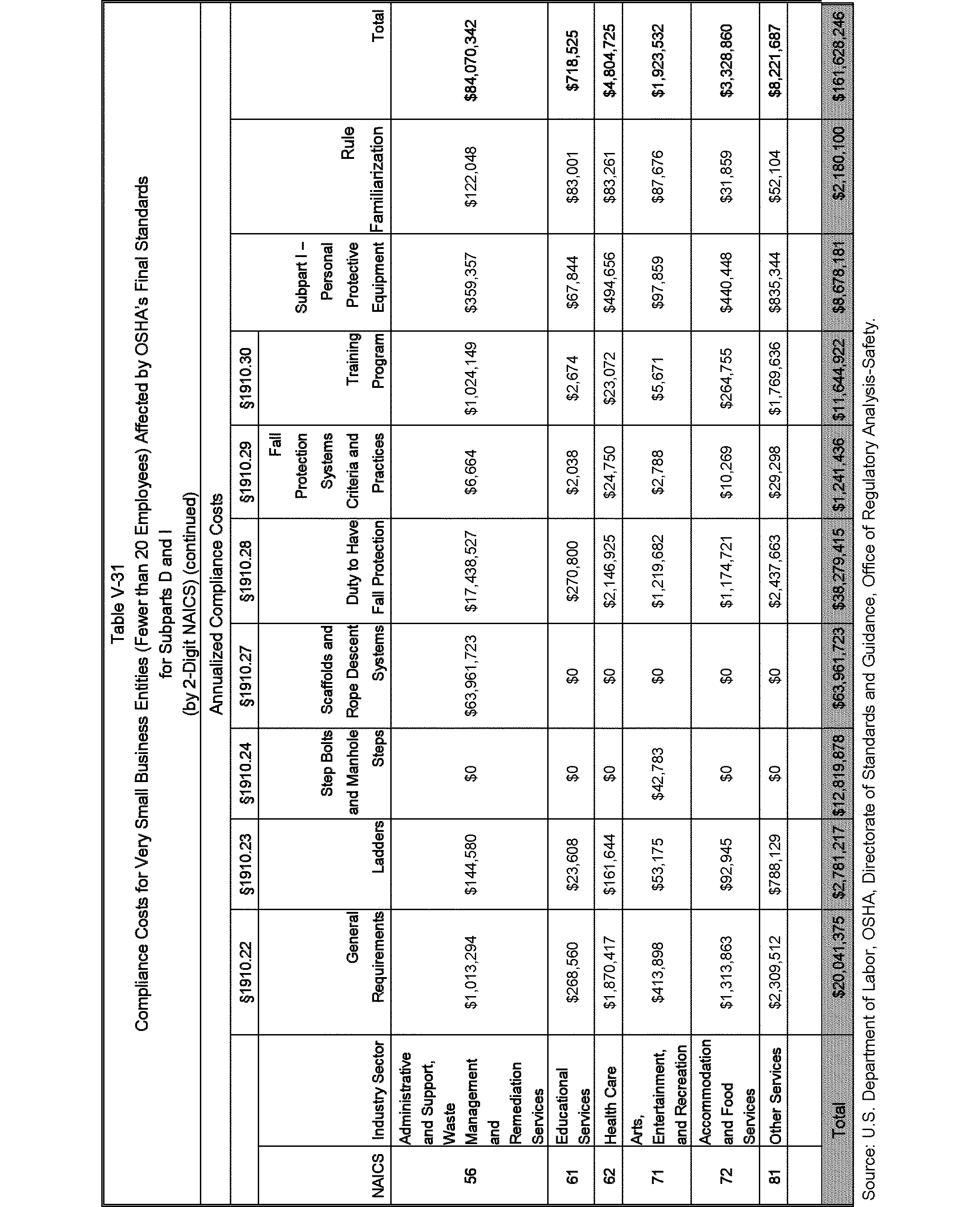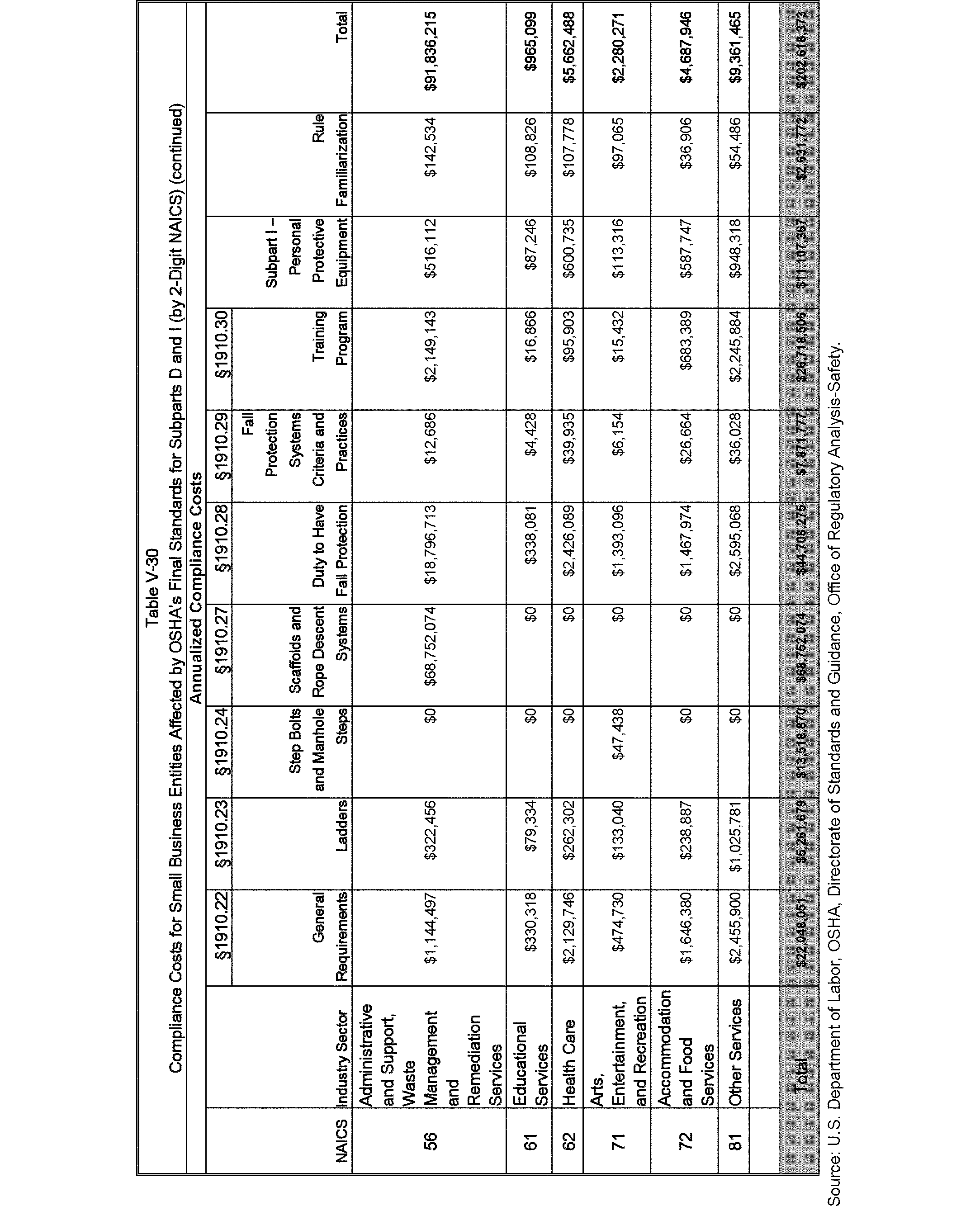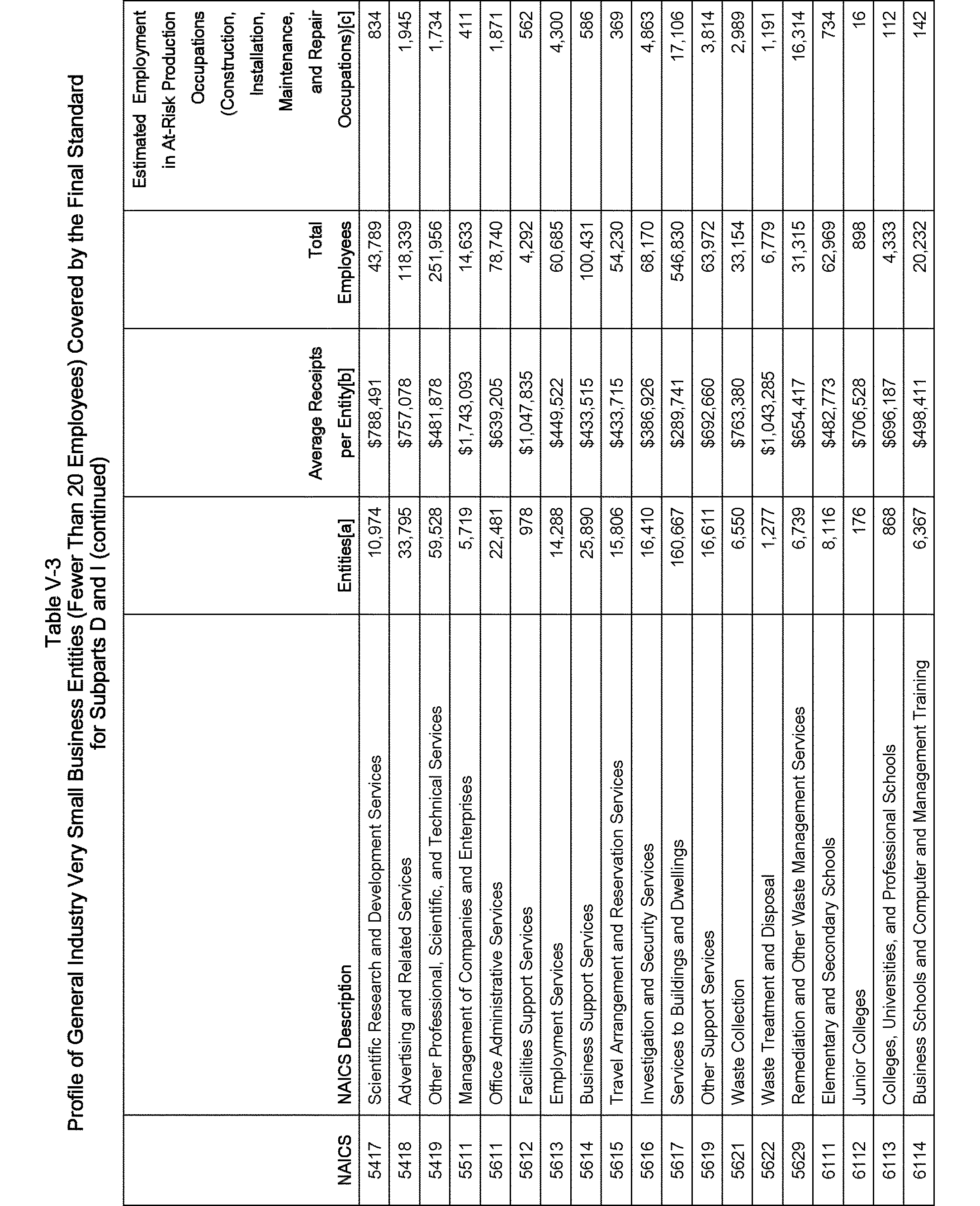 Relying on the U.S. Census' Statistics of U.S. Businesses for 2007, OSHA estimates that 6.9 million general industry establishments employing 112.3 million employees will be affected by the final standard. For the industries affected by the final standard, OSHA examined fatalities and lost-workday injuries for falls to a lower level.