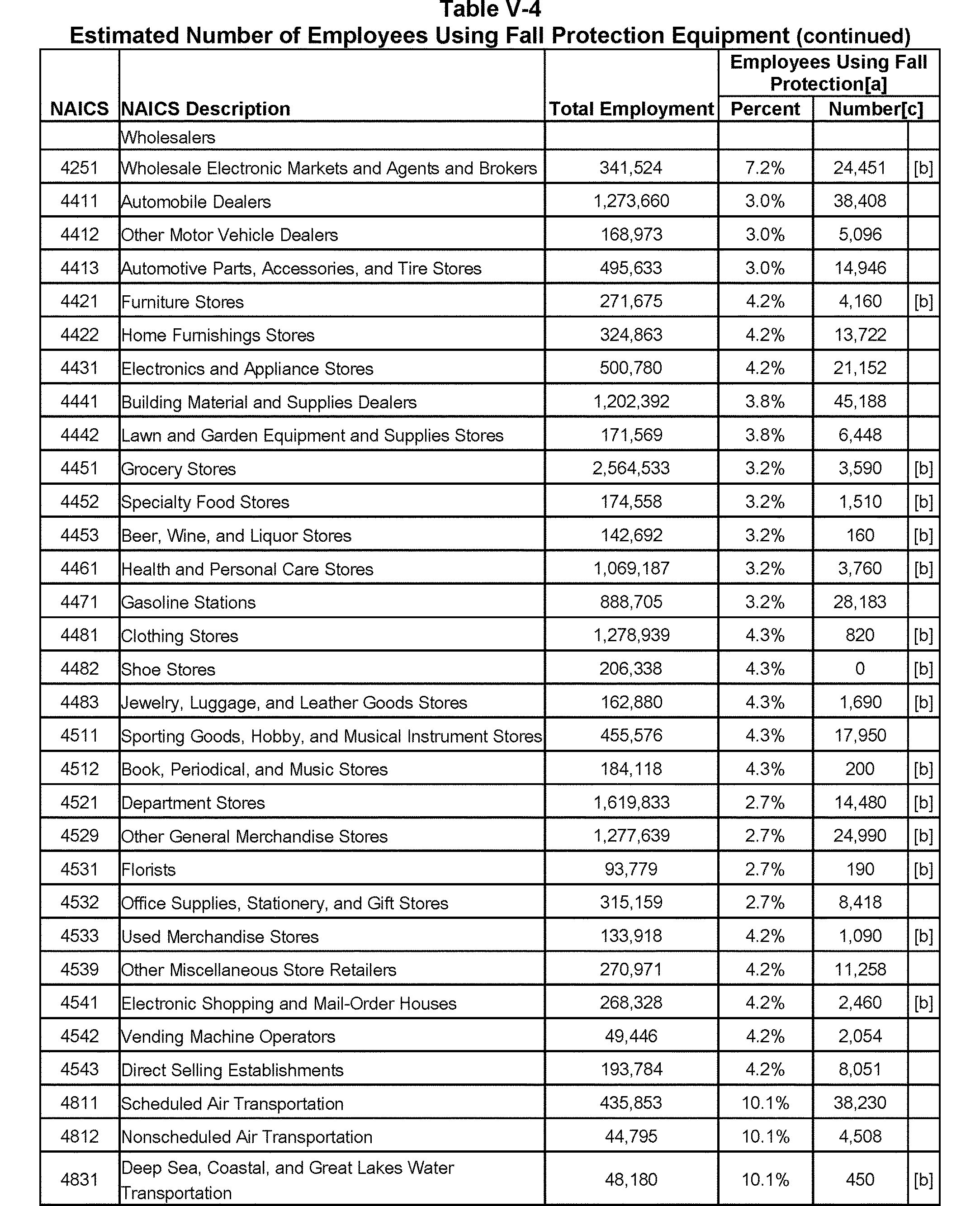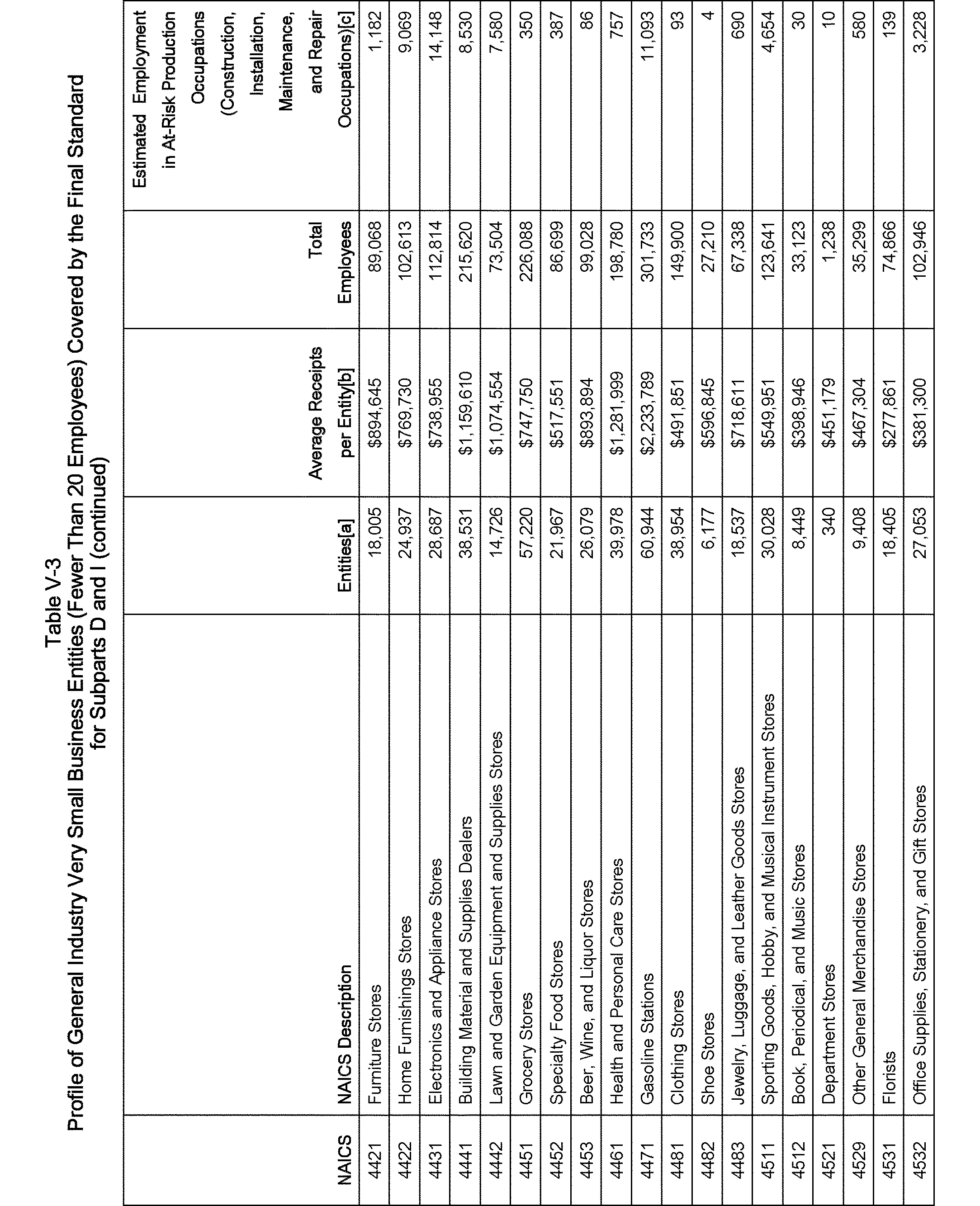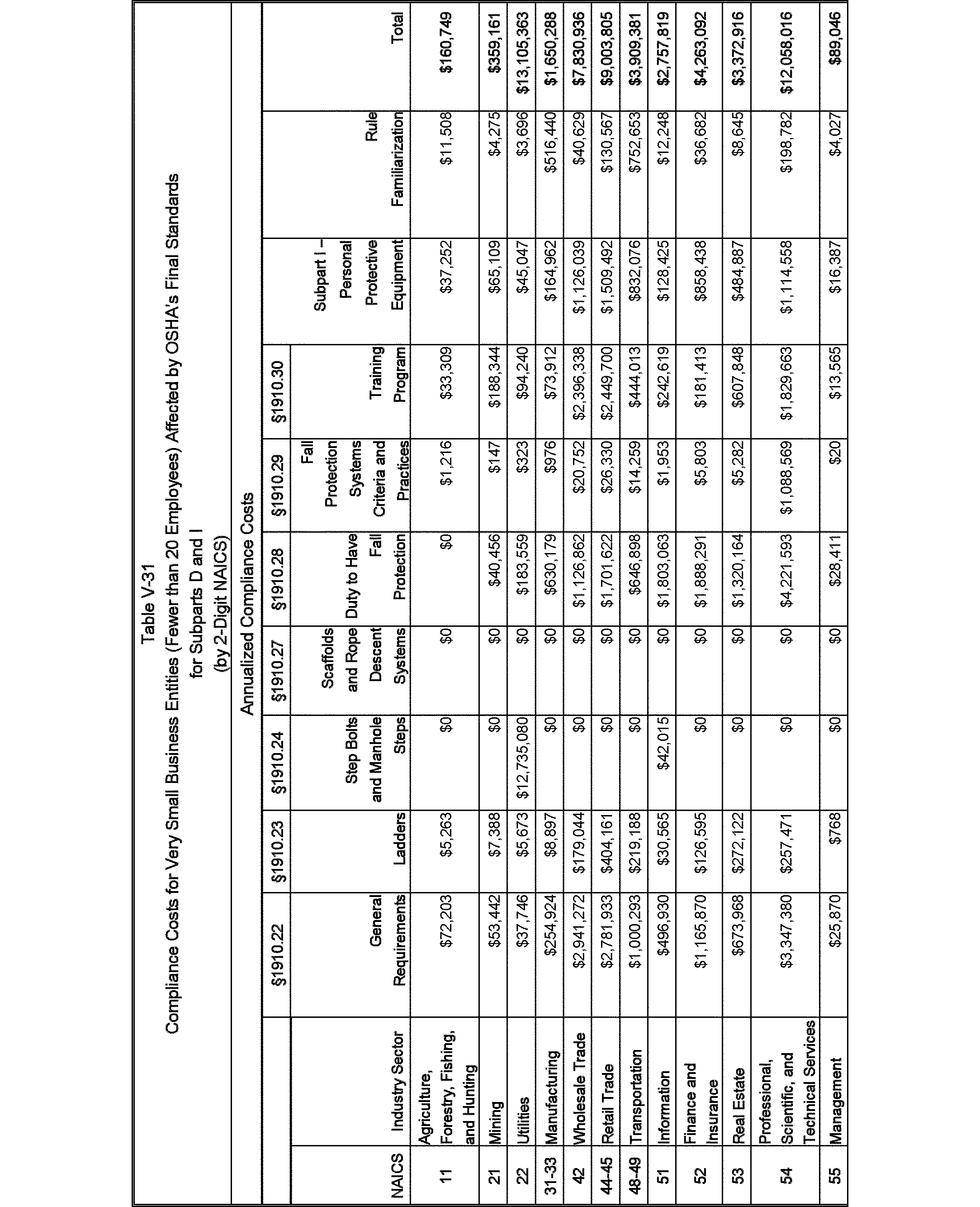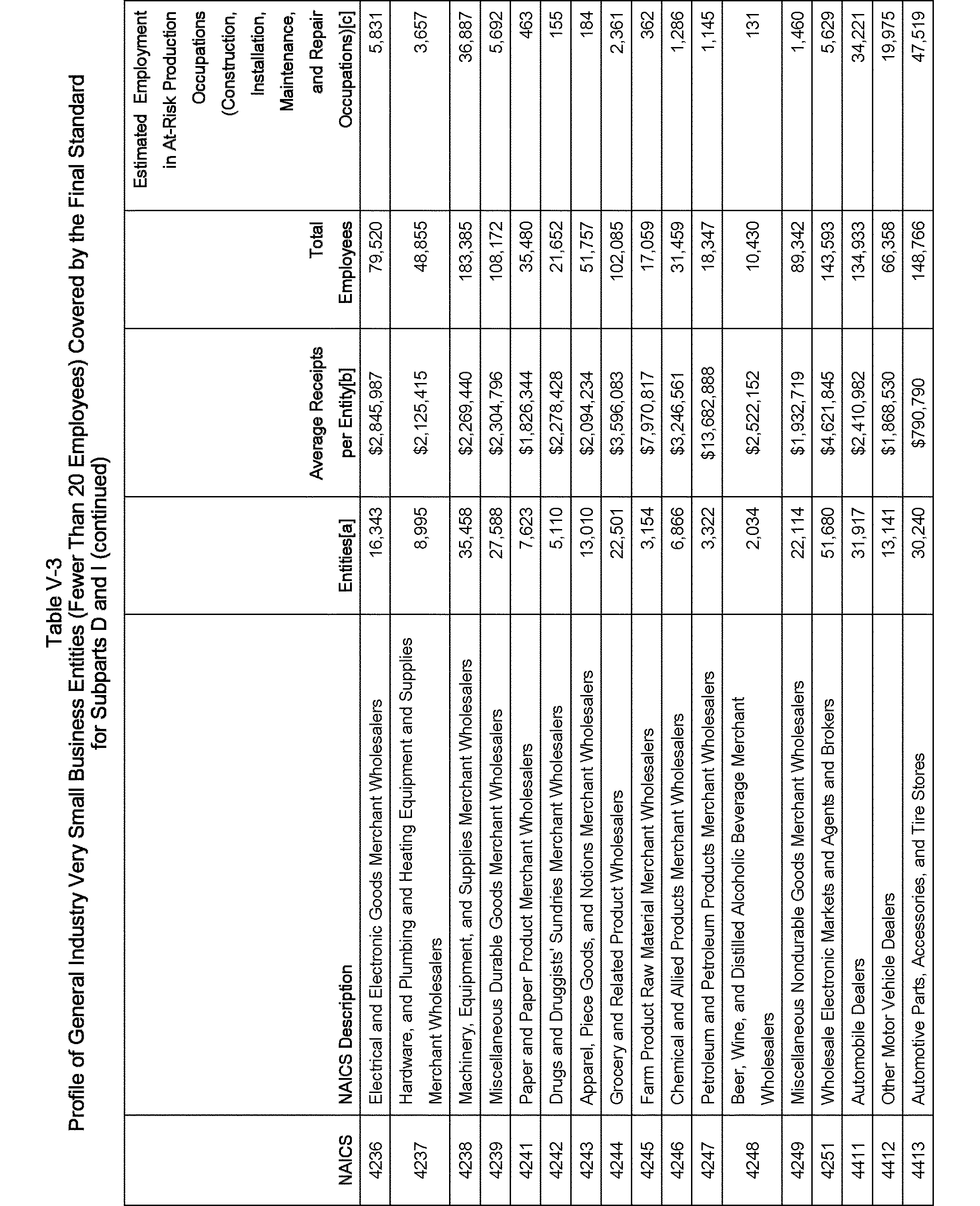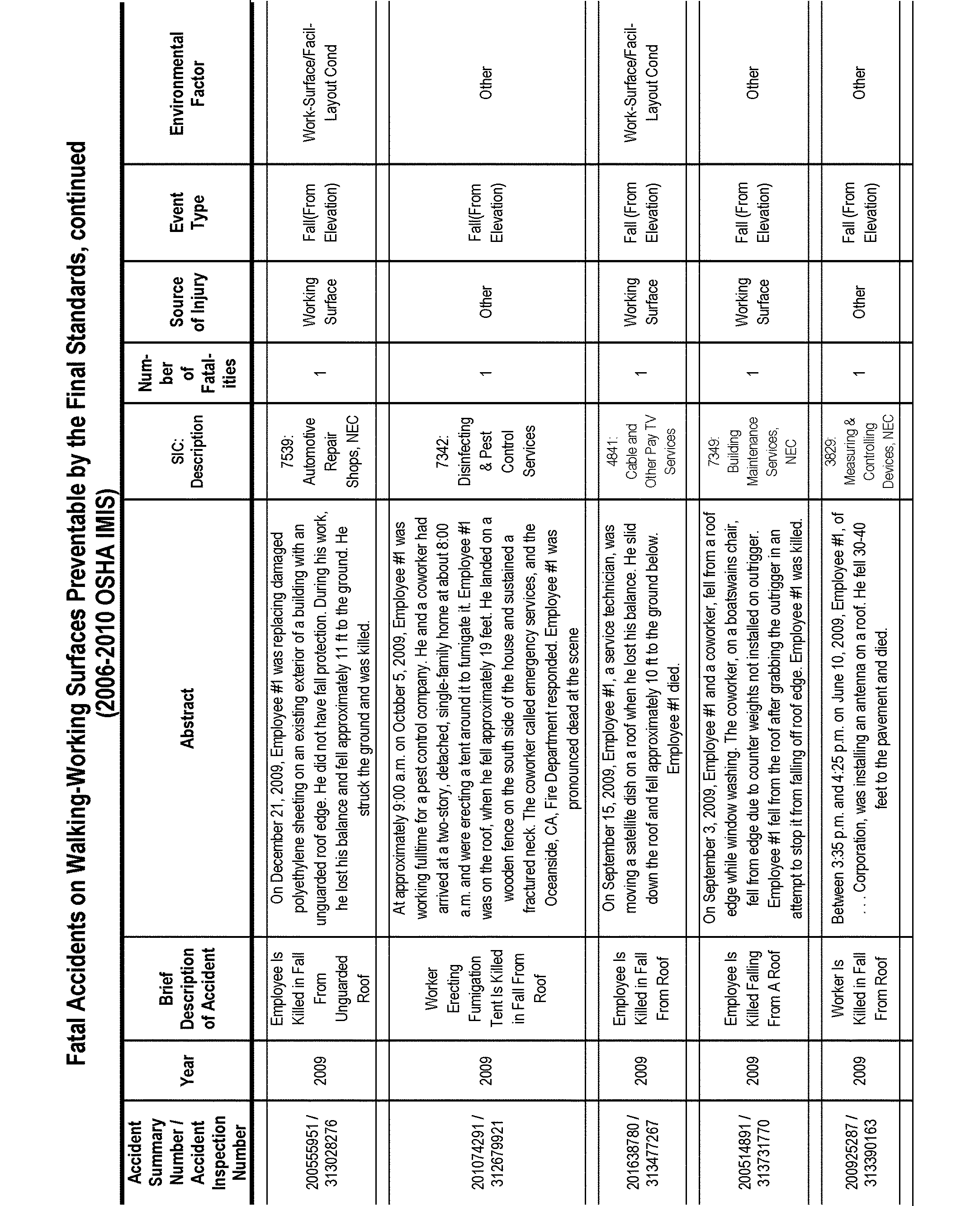 Relying on the U.S. Census' Statistics of U.S. Businesses for 2007, OSHA estimates that 6.9 million general industry establishments employing 112.3 million employees will be affected by the final standard. For the industries affected by the final standard, OSHA examined fatalities and lost-workday injuries for falls to a lower level.