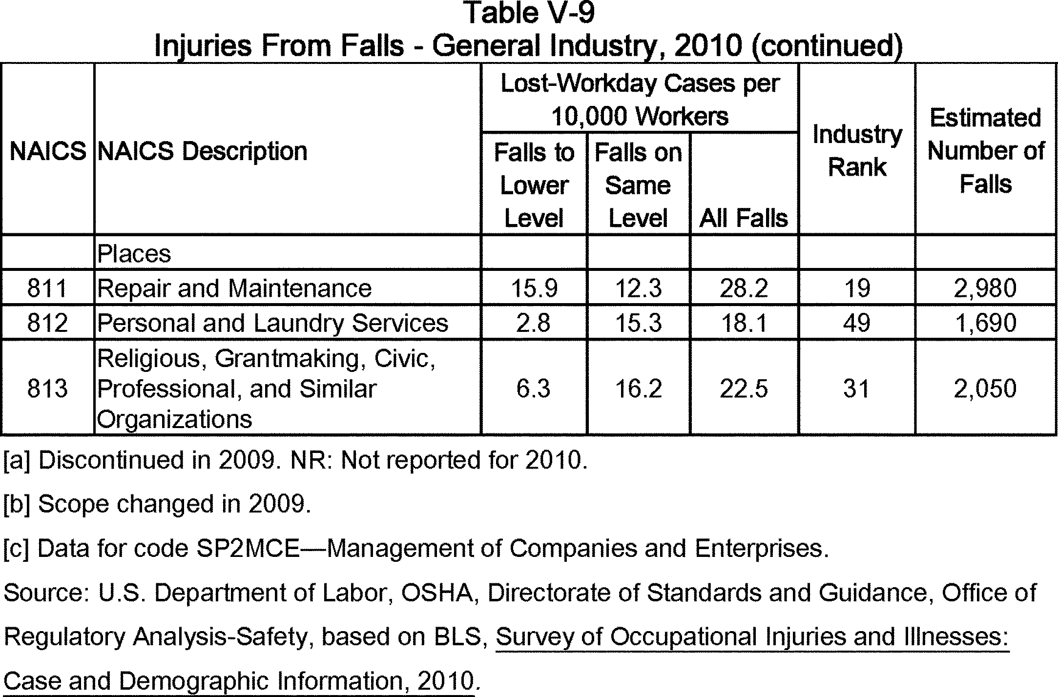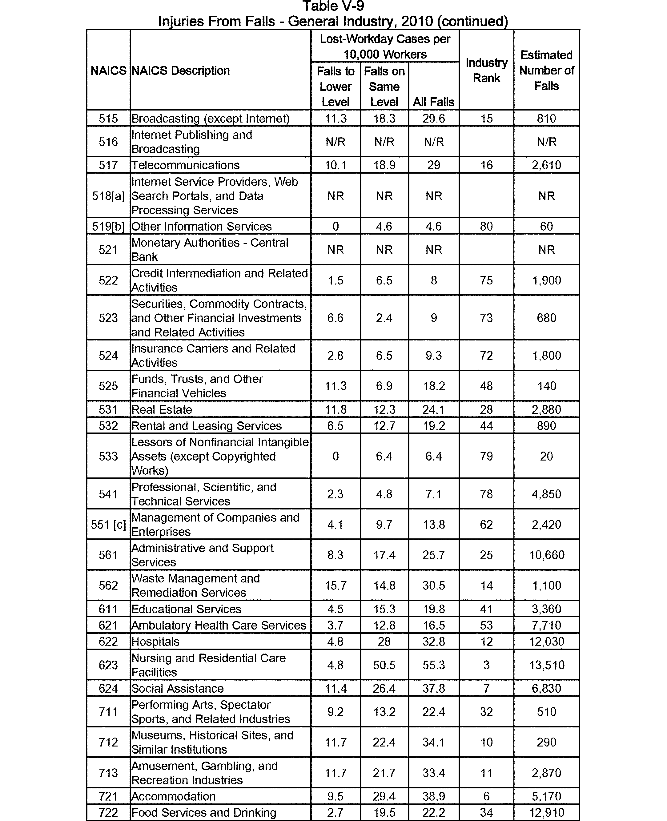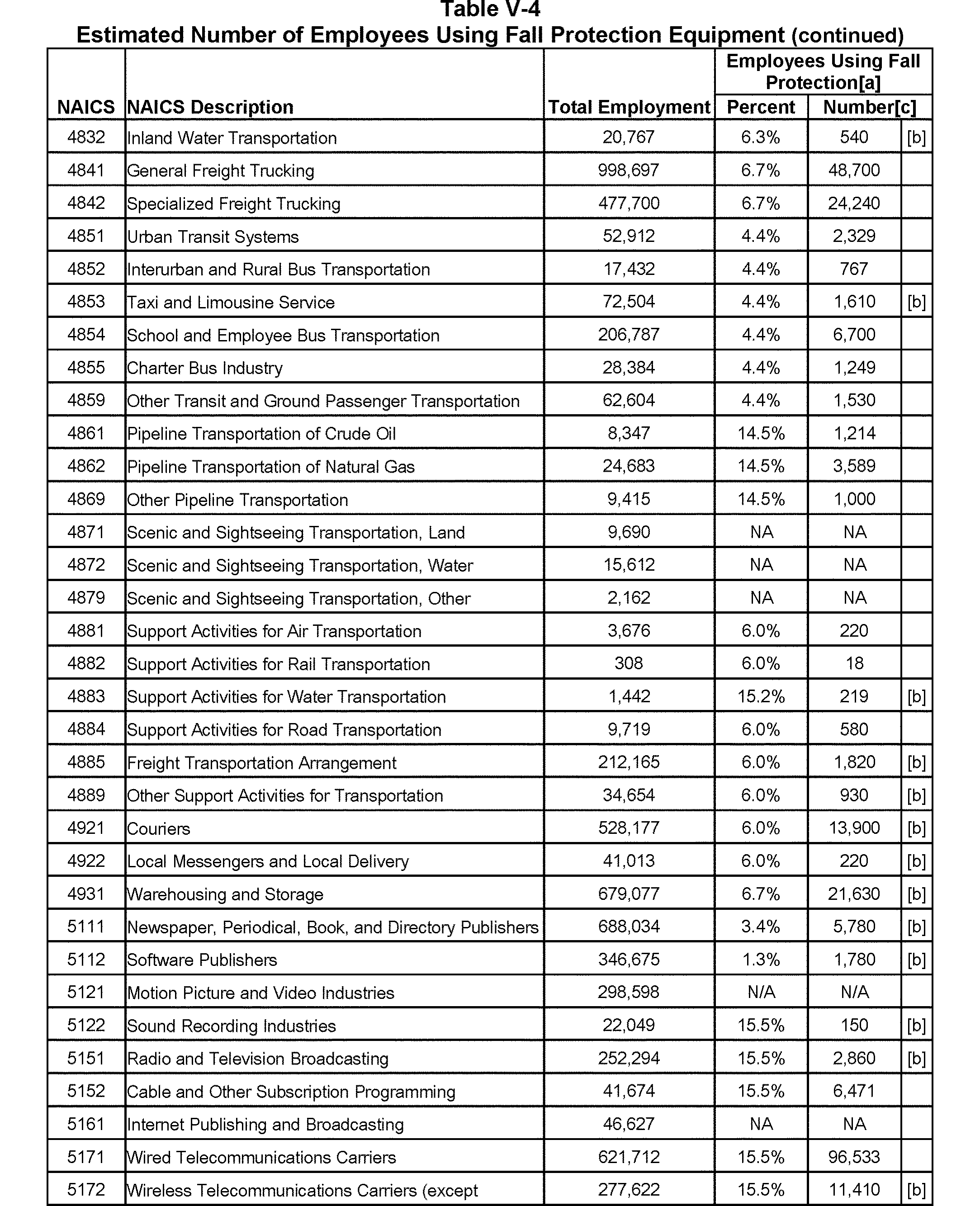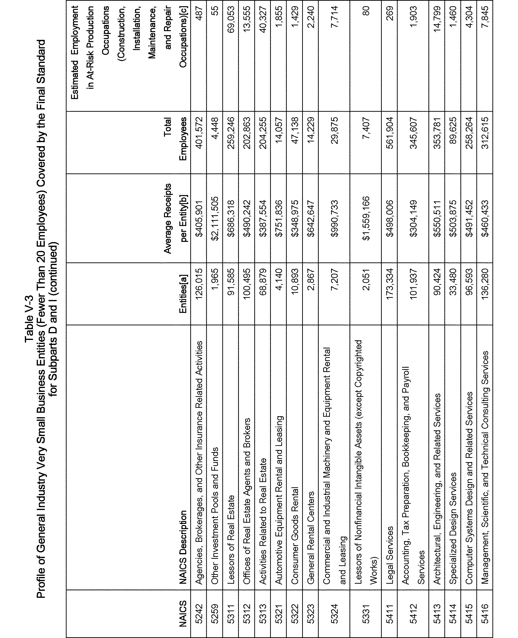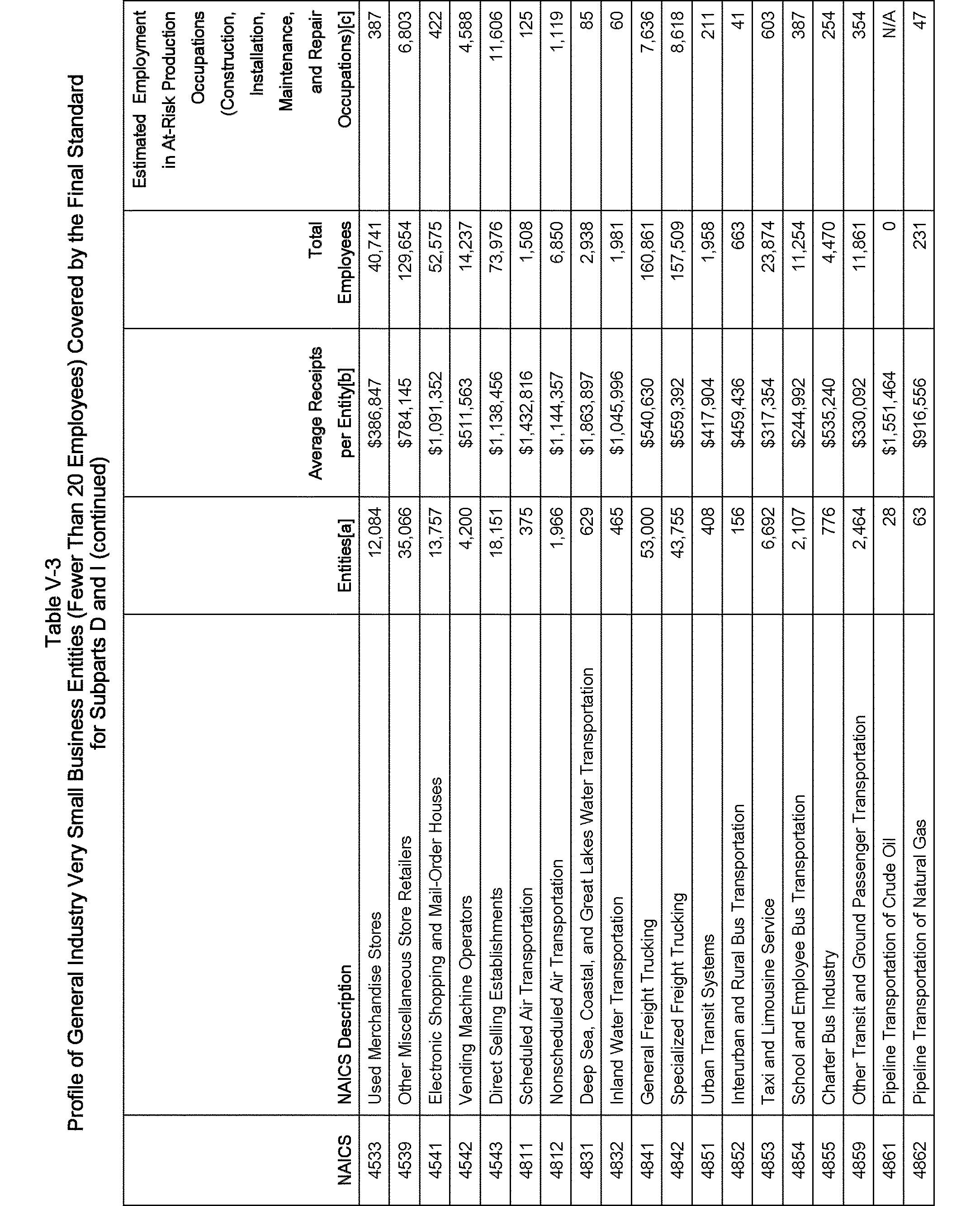 Relying on the U.S. Census' Statistics of U.S. Businesses for 2007, OSHA estimates that 6.9 million general industry establishments employing 112.3 million employees will be affected by the final standard. For the industries affected by the final standard, OSHA examined fatalities and lost-workday injuries for falls to a lower level.