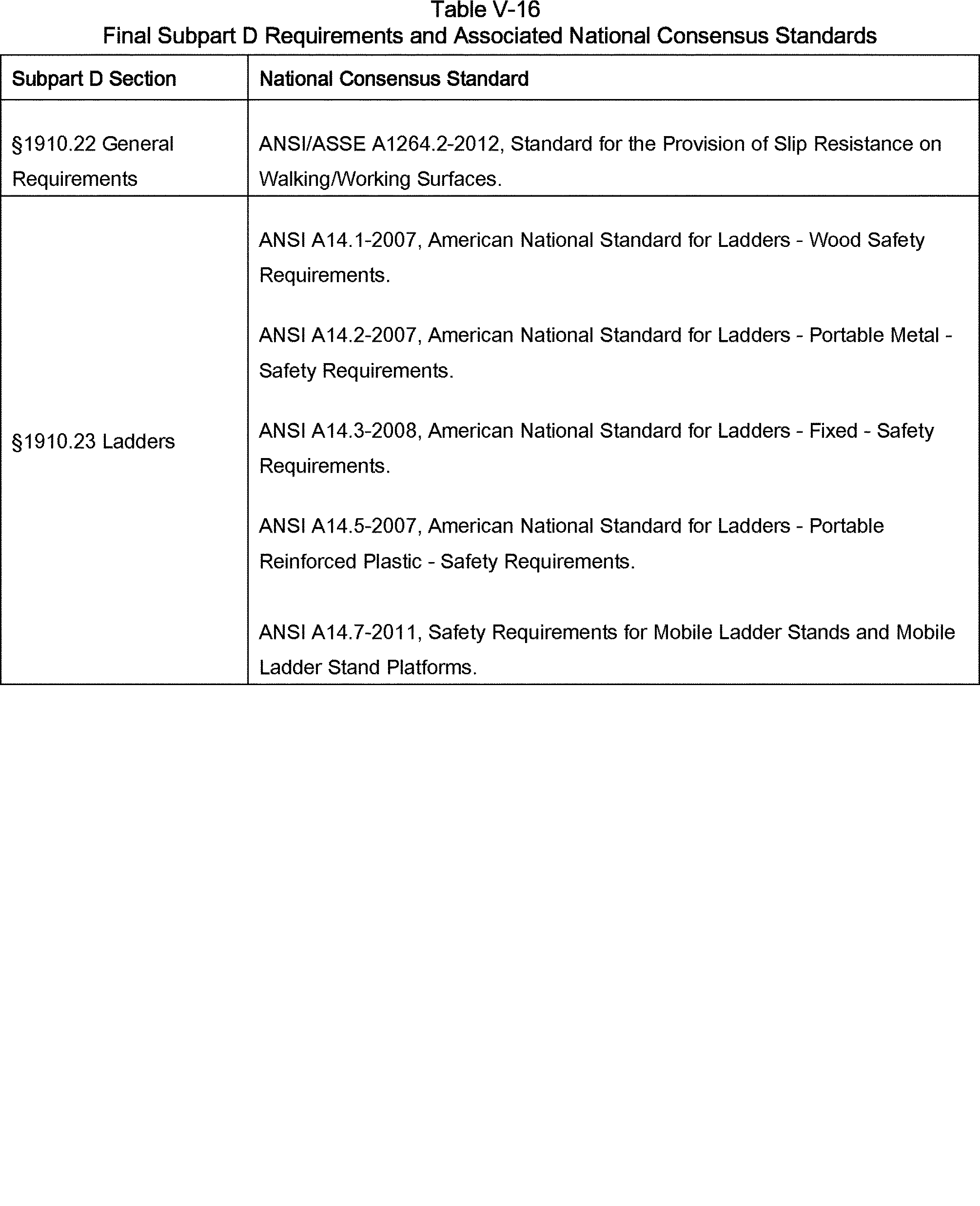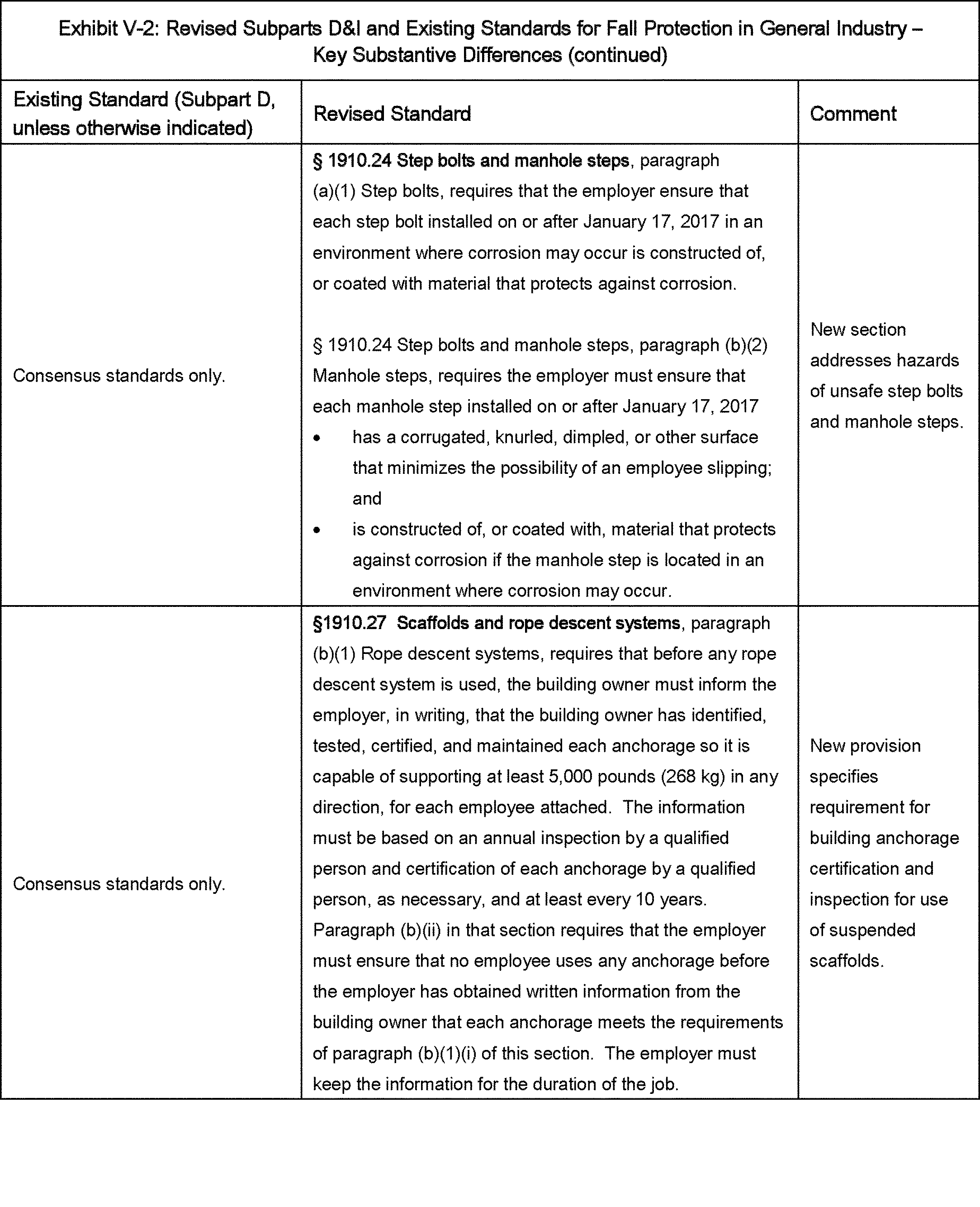 The final rule also increases consistency by incorporating provisions from other standards OSHA adopted more recently, including Powered Platforms for Building Maintenance (29 CFR 1910.66) and Scaffolds, Ladders and Other Working Surfaces in Shipyard Employment (29 CFR part 1915, subpart E).[]