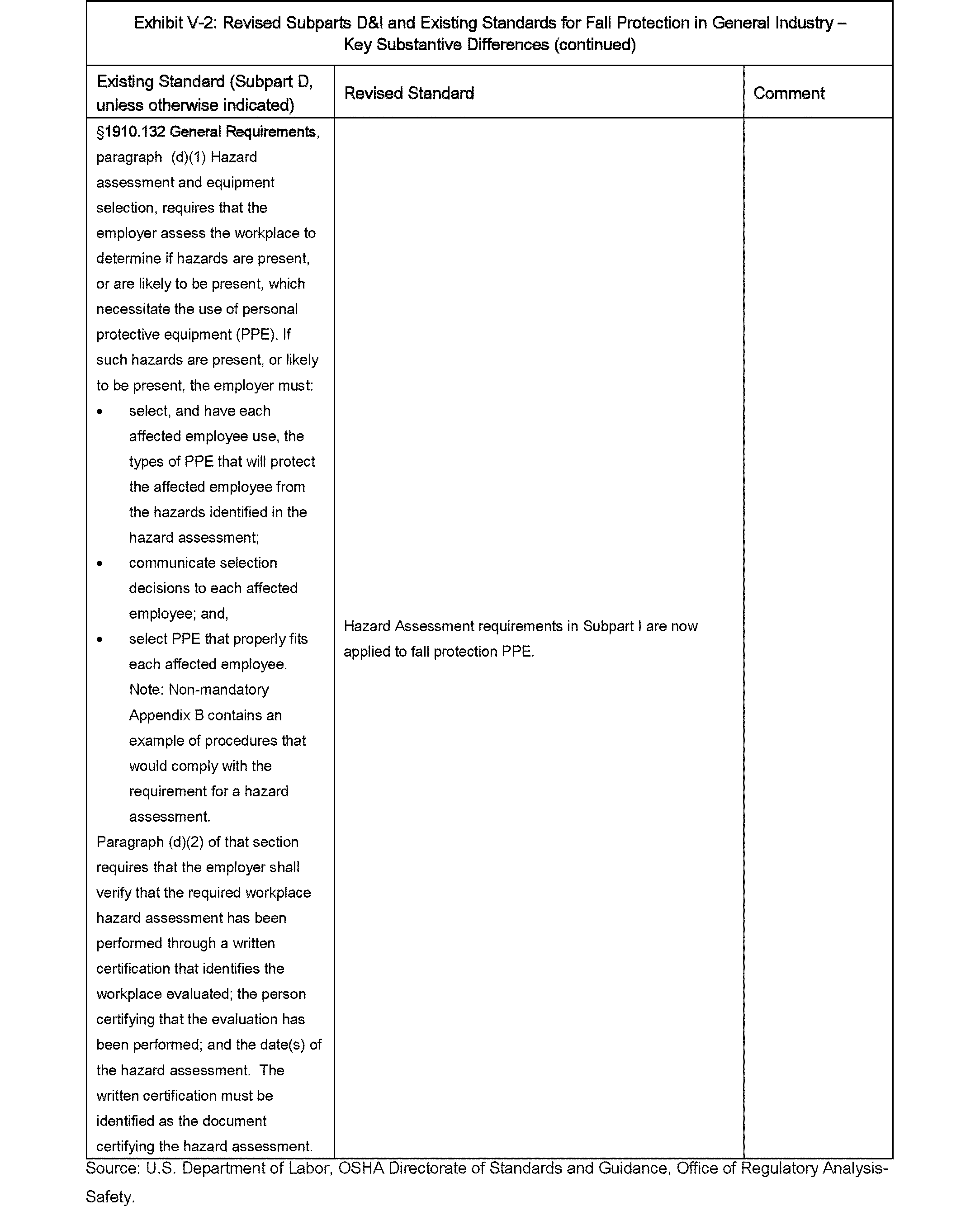 1994 final rule revising subpart I. In 1994, OSHA published a final rule updating the general industry PPE standards (59 FR 16334 (4/6/1994)). The final rule added new general provisions requiring that employers conduct hazard assessments; select proper PPE; remove defective or damaged PPE from service; and provide worker training in the proper use, care, and disposal of PPE (§ 1910.132). It also revised design, selection, and use requirements for specific types of PPE. However, the final rule did not apply the new general provisions to personal fall protection systems or include specific requirements addressing such systems.