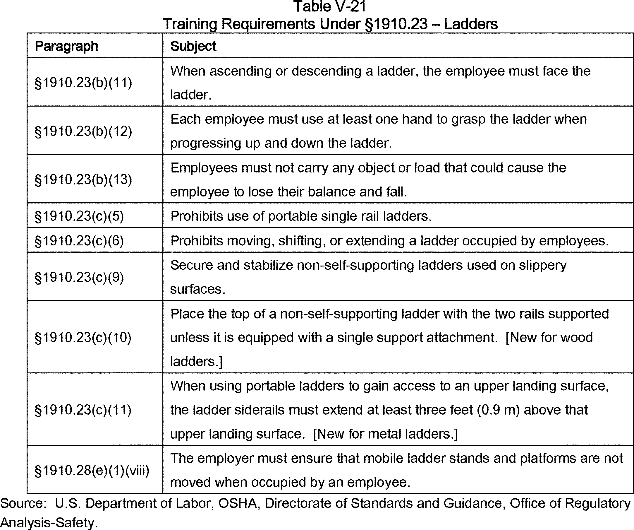 OSHA is revising and updating its general industry standards on walking-working surfaces to prevent and reduce workplace slips, trips, and falls, as well as other injuries and fatalities associated with walking-working surface hazards. The final rule includes revised and new provisions addressing, for example, fixed ladders; rope descent systems; fall protection systems and criteria, including personal fall protection systems; and training on fall hazards and fall protection systems. In addition, the final rule adds requirements on the design, performance, and use of personal fall protection systems.