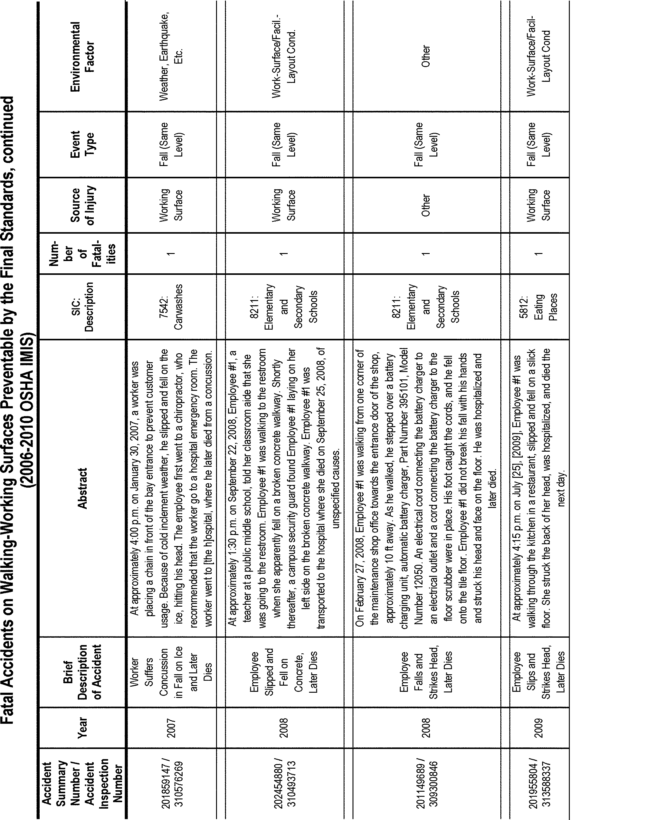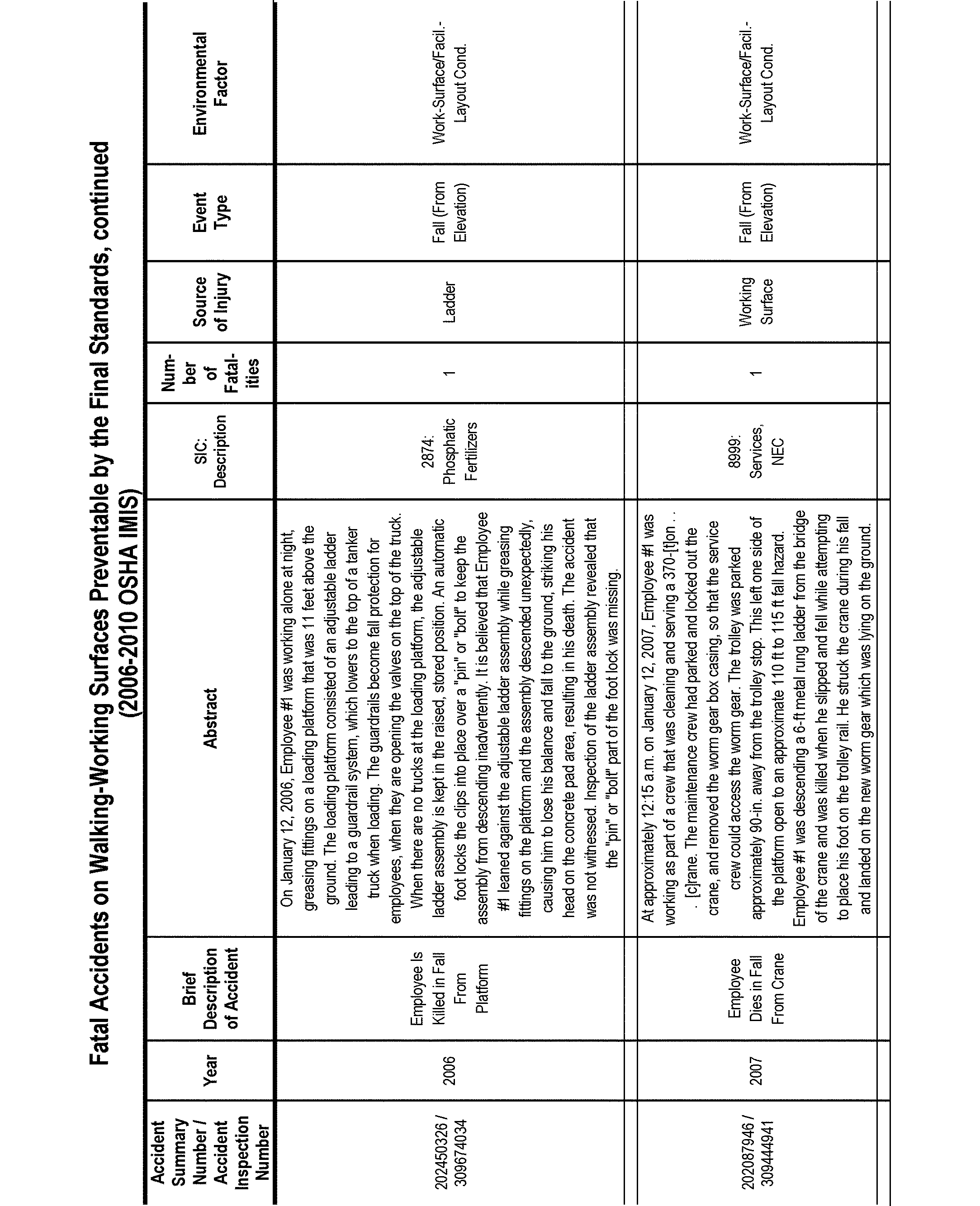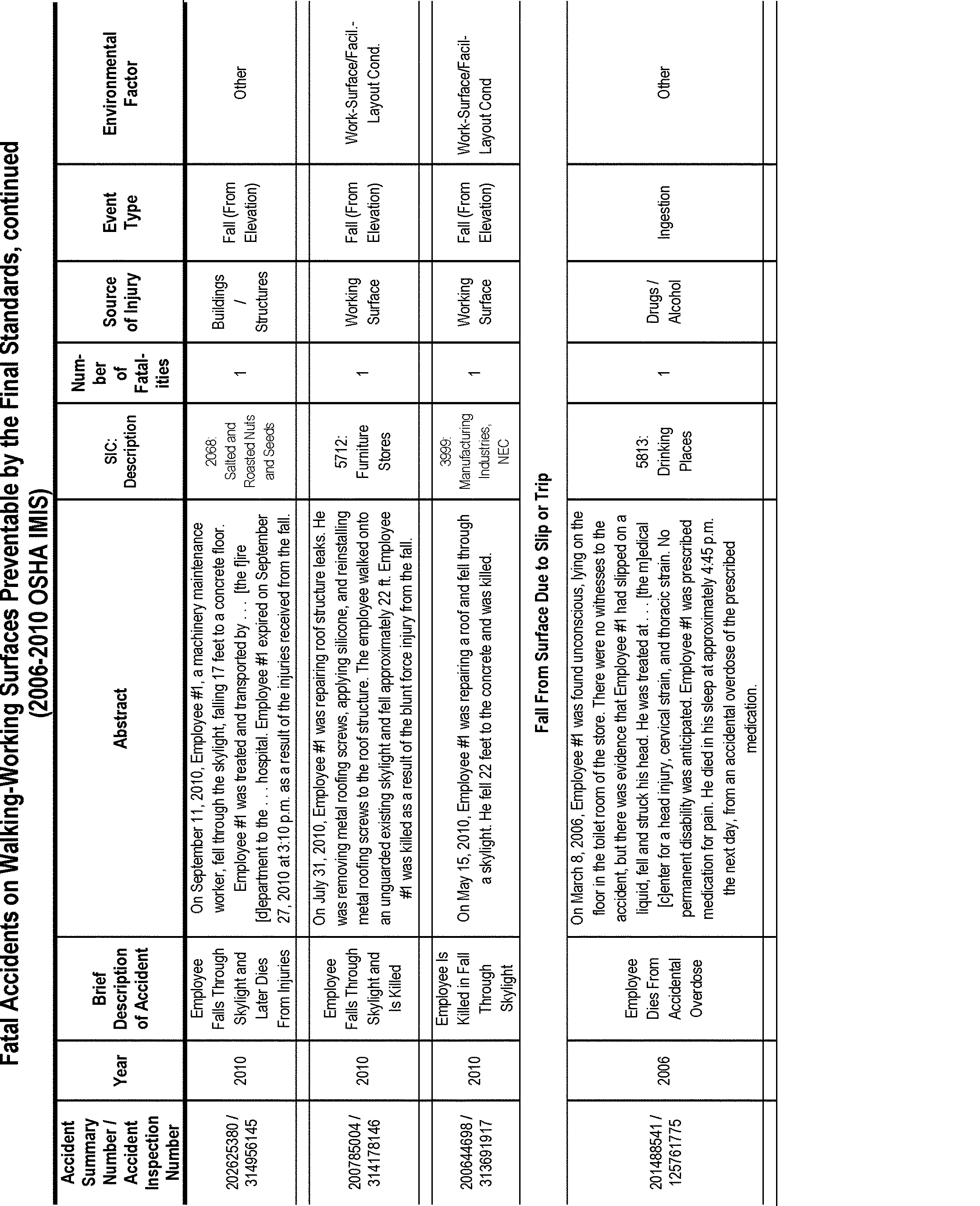 OSHA's efforts to revise and update the existing walking-working surfaces standards have been ongoing since 1973. Over that time, OSHA has gathered and analyzed a large body of data and information on walking-working surface hazards and methods to prevent and eliminate them. After careful examination and analysis of the rulemaking record as a whole, OSHA has determined that the requirements in this final rule will significantly reduce Start Printed Page 82496the number of worker deaths and injuries that occur each year due to these hazards, particularly workplace slip, trip, and fall fatalities and injuries. OSHA estimates that final standard rule will prevent 29 fatalities and 5,842 injuries annually (See Sections II and V).