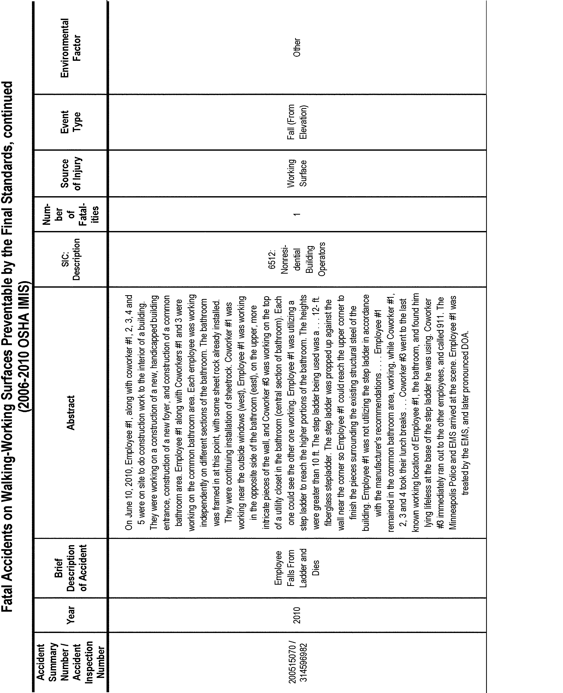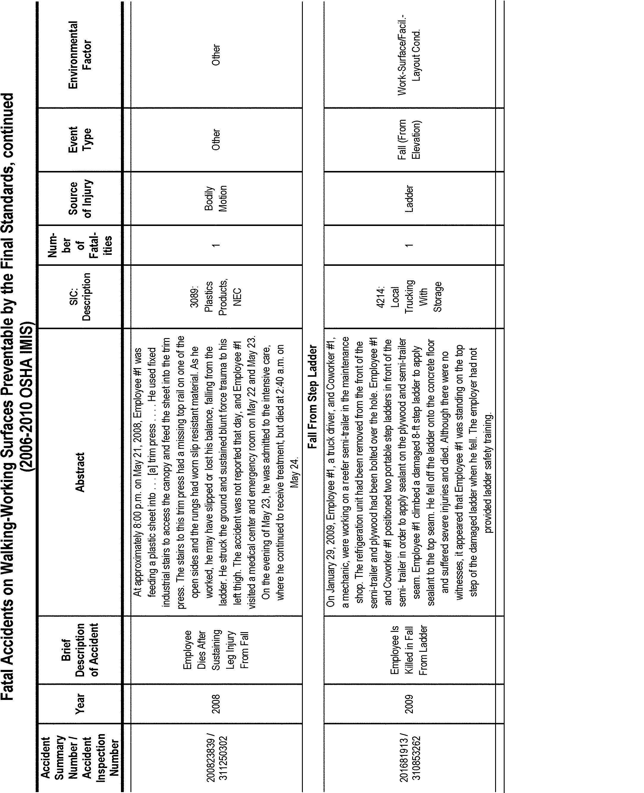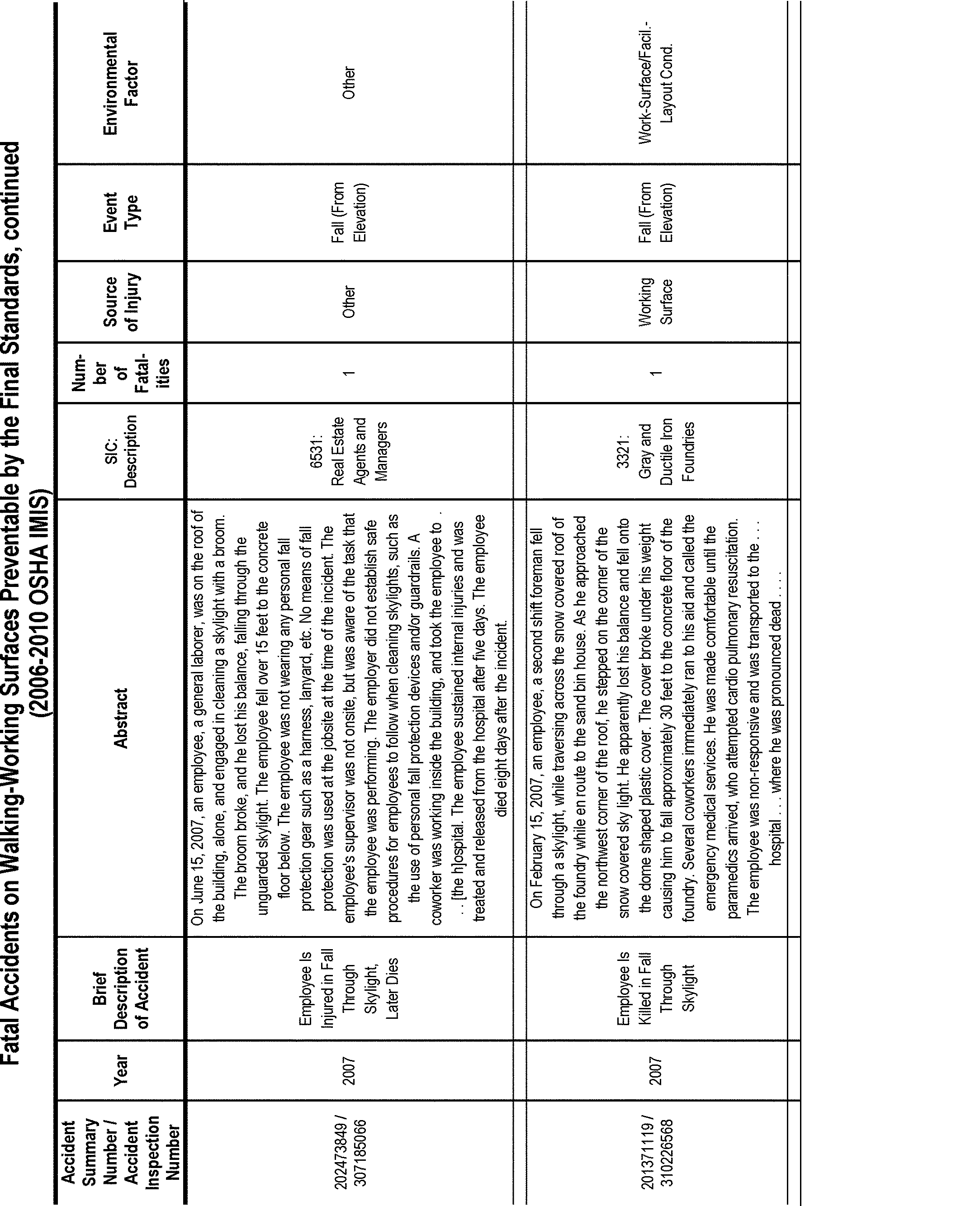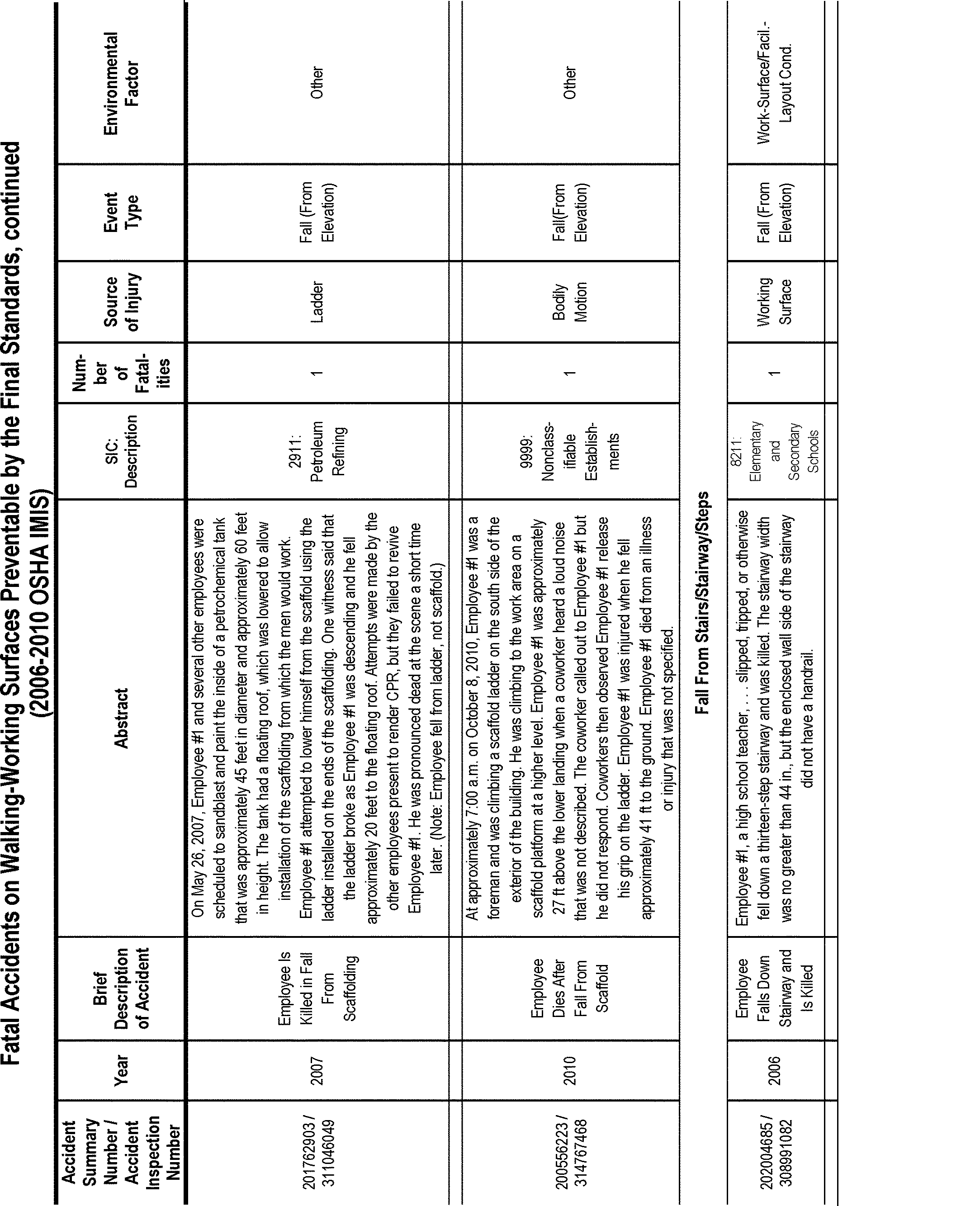 OSHA's efforts to revise and update the existing walking-working surfaces standards have been ongoing since 1973. Over that time, OSHA has gathered and analyzed a large body of data and information on walking-working surface hazards and methods to prevent and eliminate them. After careful examination and analysis of the rulemaking record as a whole, OSHA has determined that the requirements in this final rule will significantly reduce Start Printed Page 82496the number of worker deaths and injuries that occur each year due to these hazards, particularly workplace slip, trip, and fall fatalities and injuries. OSHA estimates that final standard rule will prevent 29 fatalities and 5,842 injuries annually (See Sections II and V).