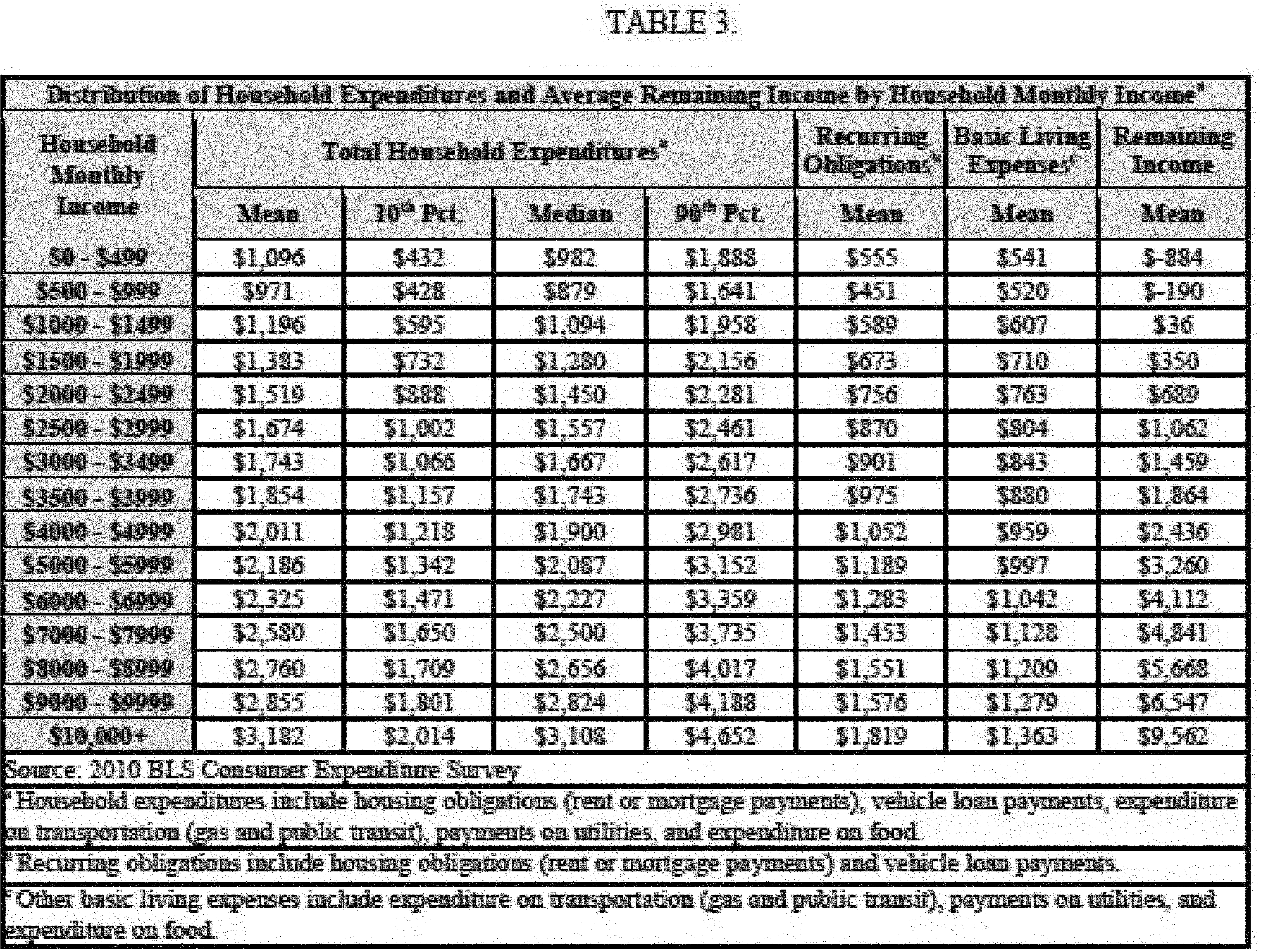 - Forecast a reasonable amount for basic living expenses, other than debt obligations and housing costs; and