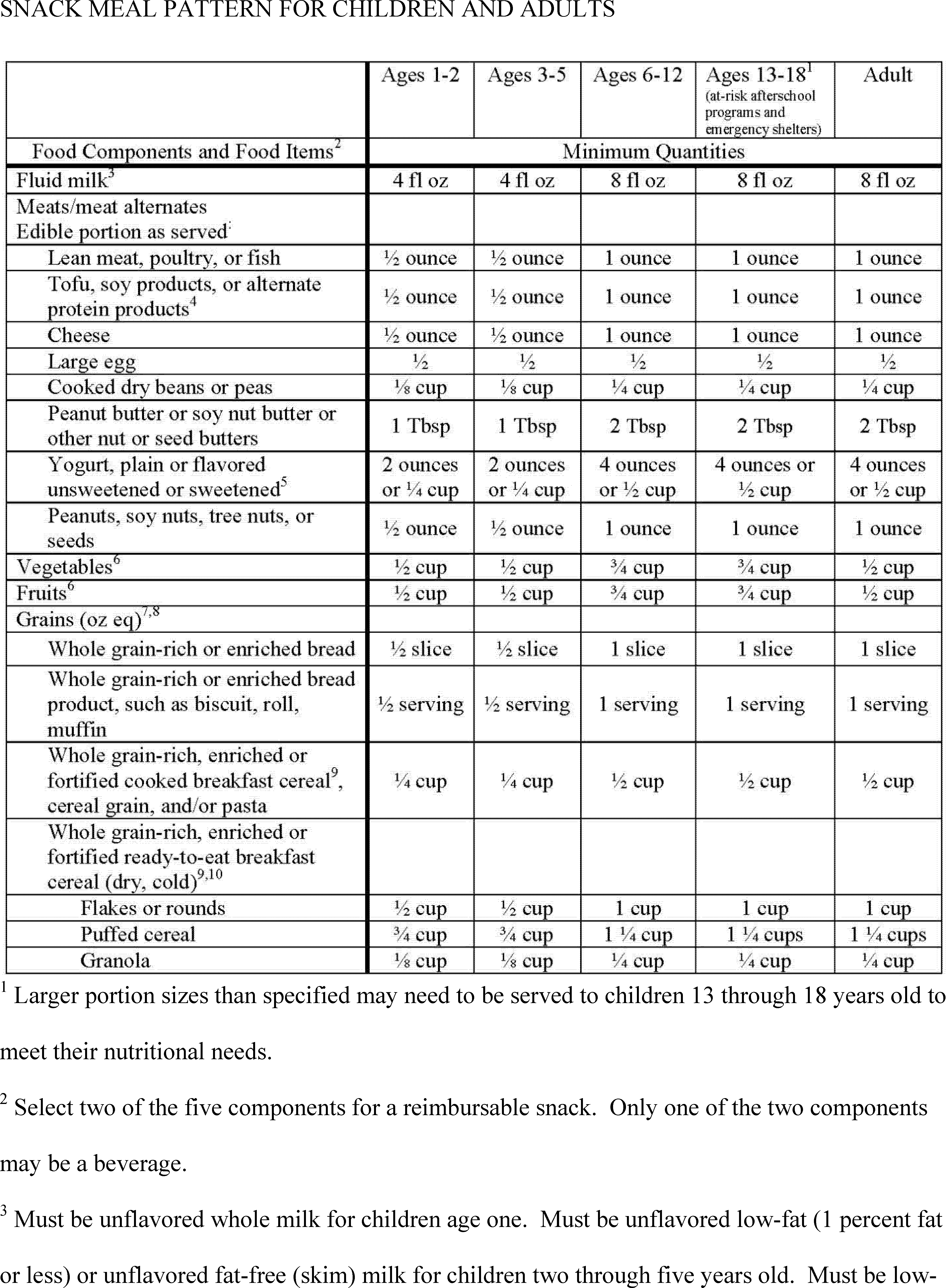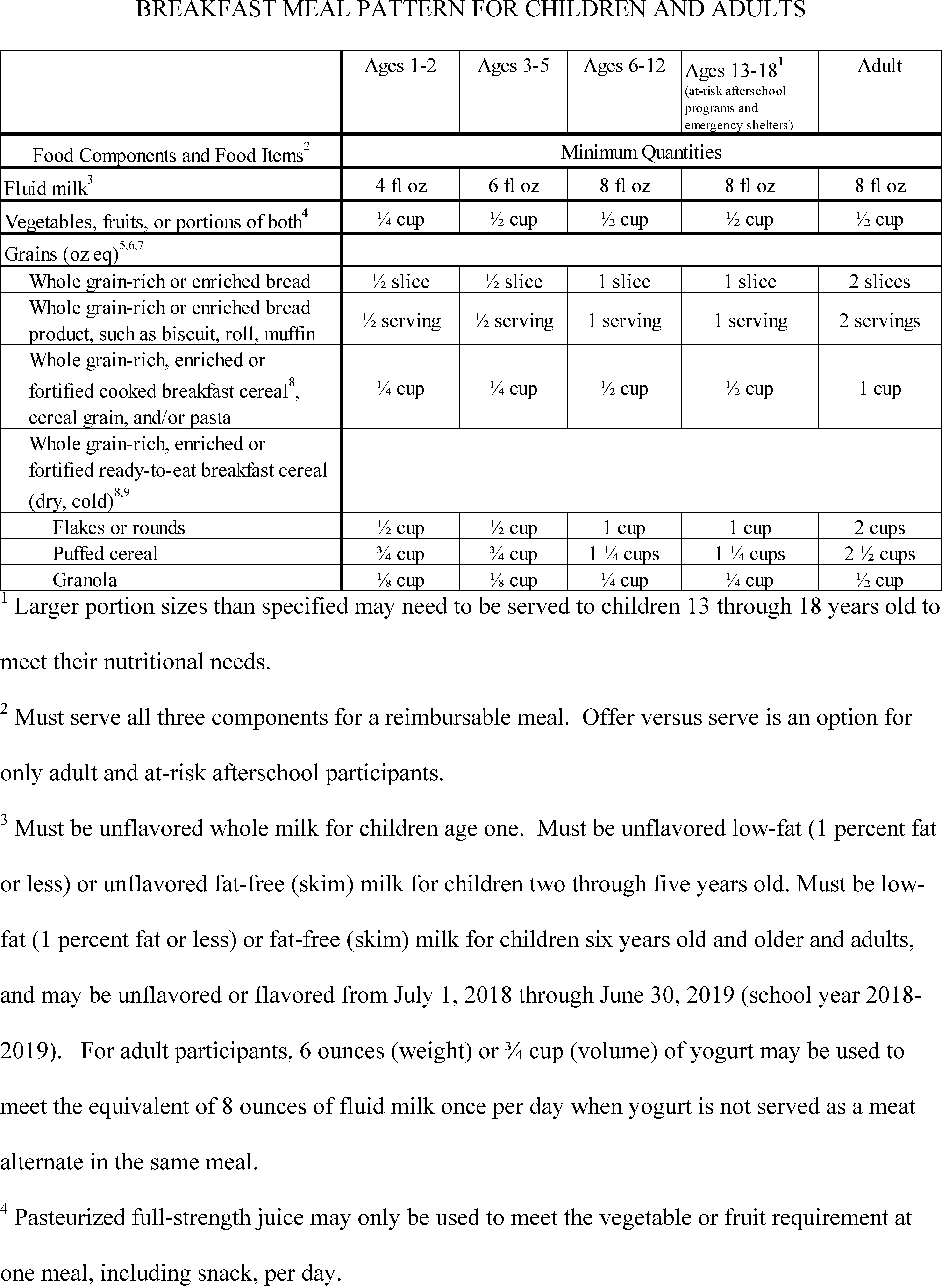 Adults must be served milk that is low-fat (1 percent fat or less) or fat-free (skim). Milk may be unflavored or flavored from July 1, 2018, through June 30, 2019 (school year 2018–2019). Six ounces (weight) or