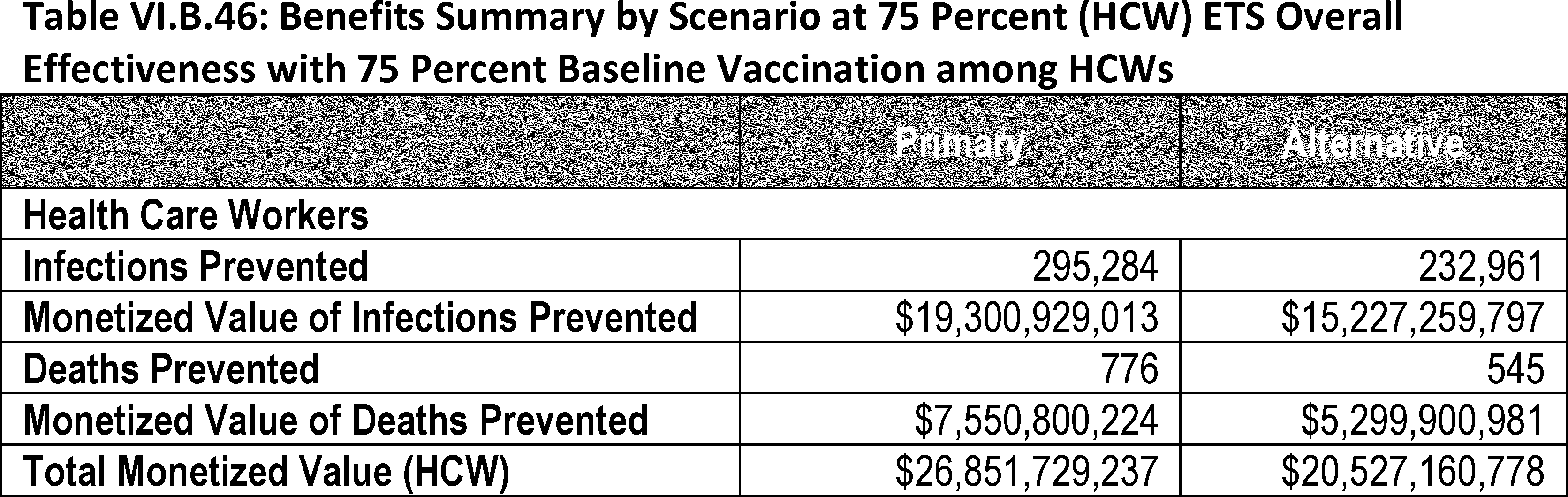 Finally, OSHA concludes that the serious and potentially fatal consequences of COVID-19 pose a particular threat to employees, as the nature of SARS-CoV-2 transmission readily enables the virus to spread when employees are working in spaces shared with others (e.g., co-workers, patients, visitors), a common characteristic of healthcare settings where direct care is provided. While not every setting is represented in the evidence that OSHA has assembled, the best available evidence illustrates that clusters and outbreaks []