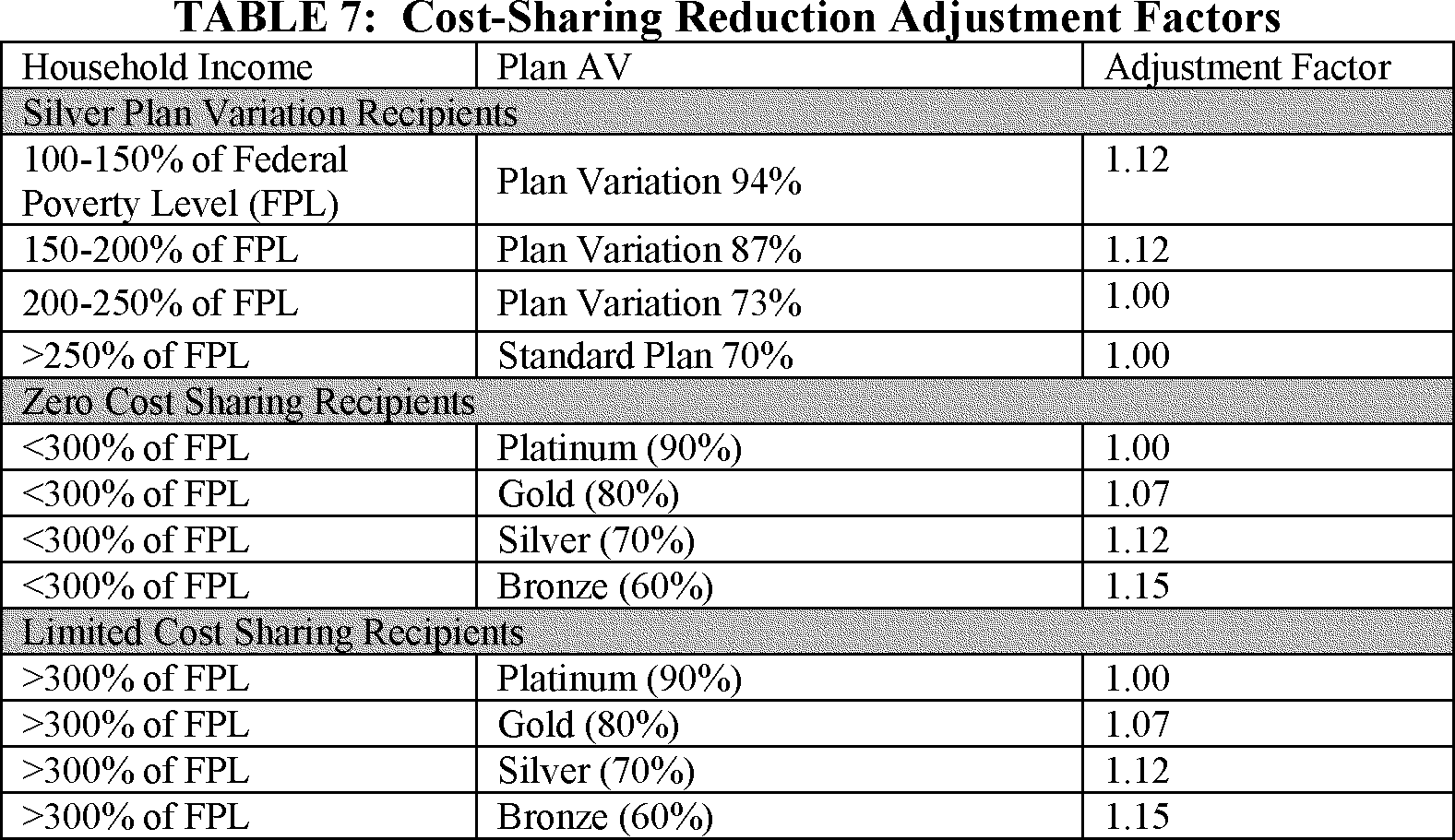 We did not in that rule modify the de minimis range for the income-based silver CSR plan variations (the plans with an AV of 73, 87 and 94 percent) under §§ 156.400 and 156.420. The de minimis variation for an income-based silver CSR plan variation is a single percentage point. In the Actuarial Value and Cost-Sharing Reductions Bulletin (2012 Bulletin) issued on February 24, 2012, we explained why we did not intend to require issuers to offer a silver CSR plan variation with an AV of 70 percent; to align with this change, we also modified the de minimis range for expanded bronze plans from +5/−2 to +5/−4.
